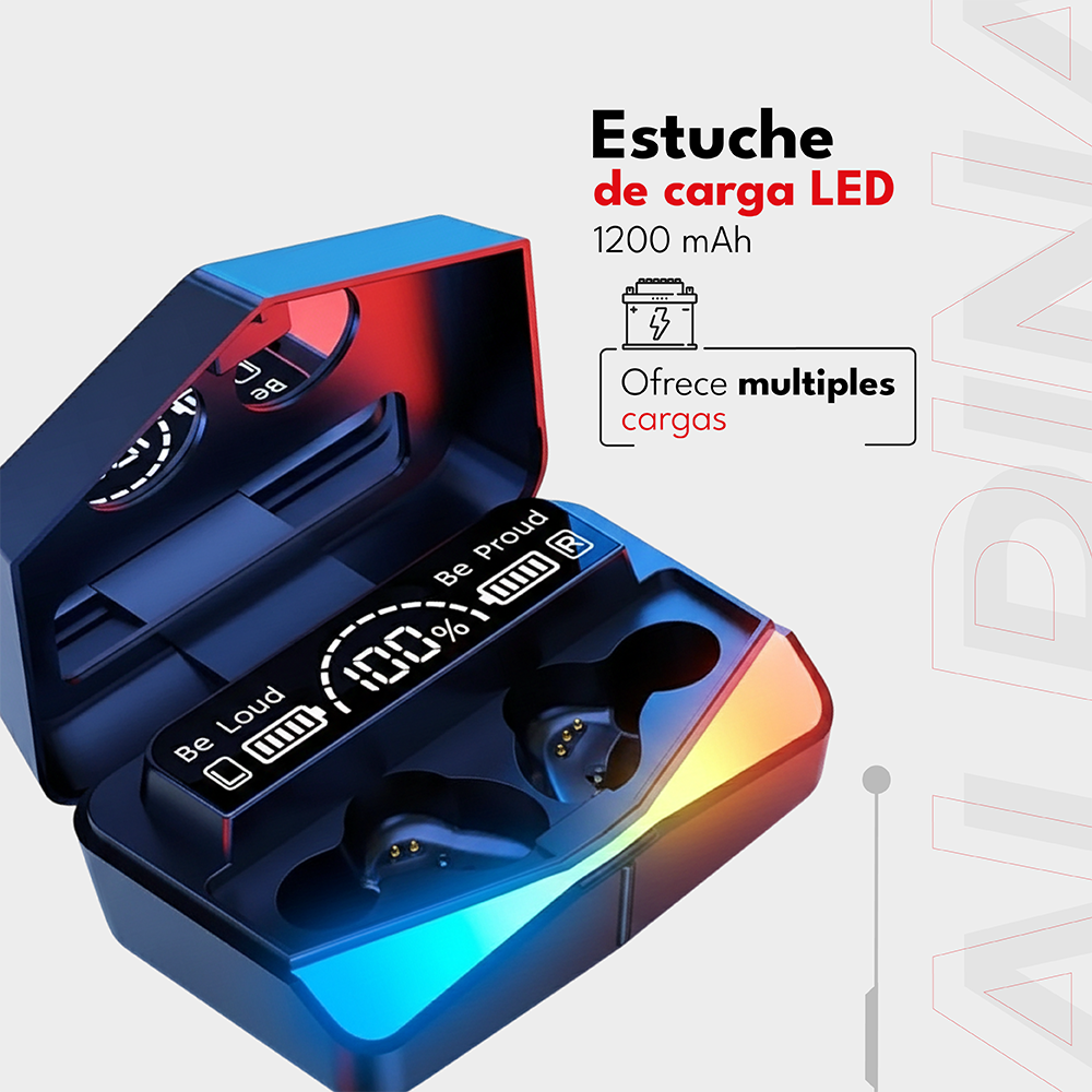 Gracias a su modo de latencia ultrabaja de 65ms, estos auriculares te permiten reaccionar al instante en partidas competitivas. Su audio tridimensional mejora la percepción espacial de pasos y disparos, brindando una ventaja táctica real. El estuche, además de moderno, cuenta con una batería de 1200 mAh que ofrece múltiples cargas, mientras que su conexión estable de 20 metros te da libertad total de movimiento.