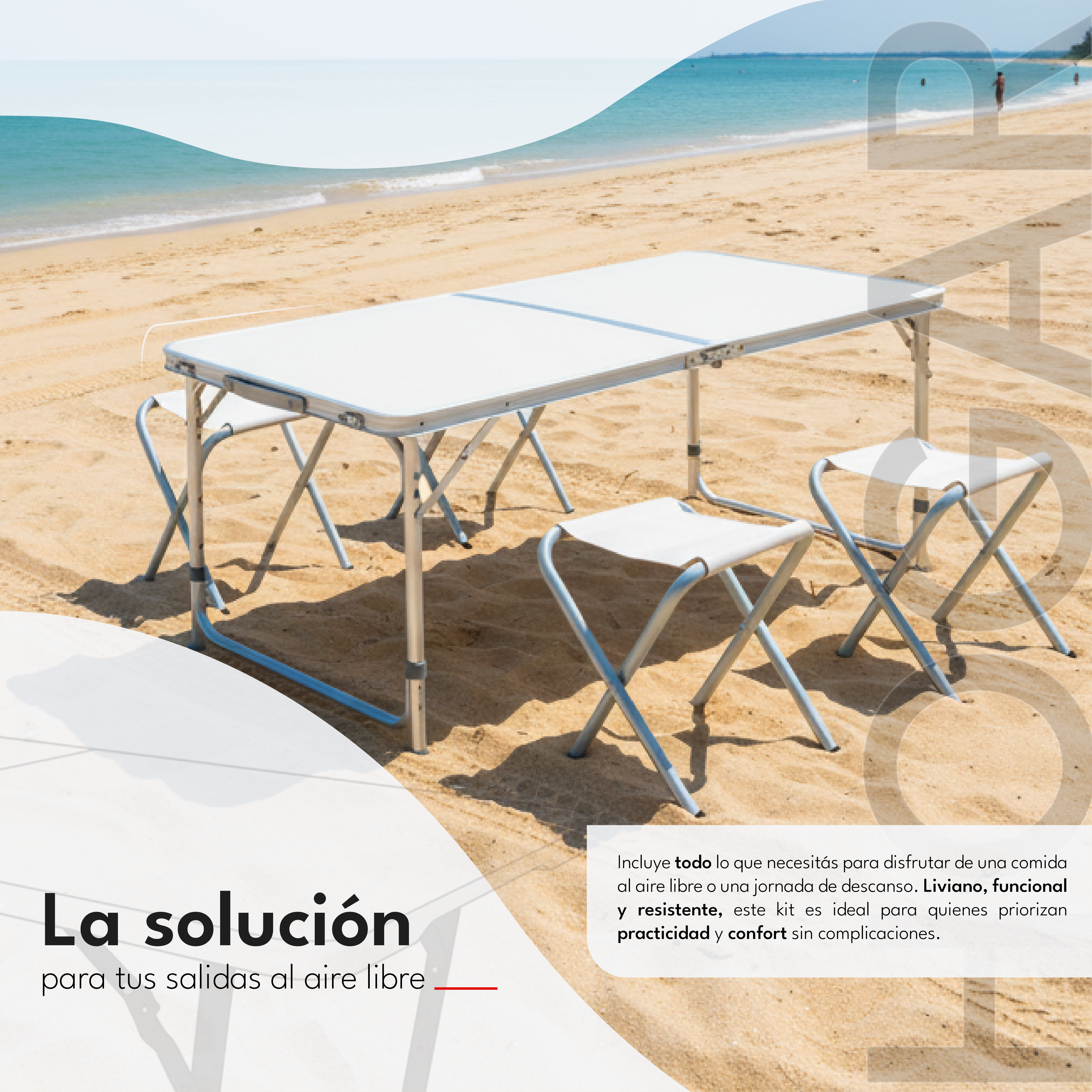 Porque incluye todo lo que necesitás para disfrutar de una comida al aire libre o una jornada de descanso. Liviano, funcional y resistente, este kit es ideal para quienes priorizan practicidad y confort sin complicaciones.