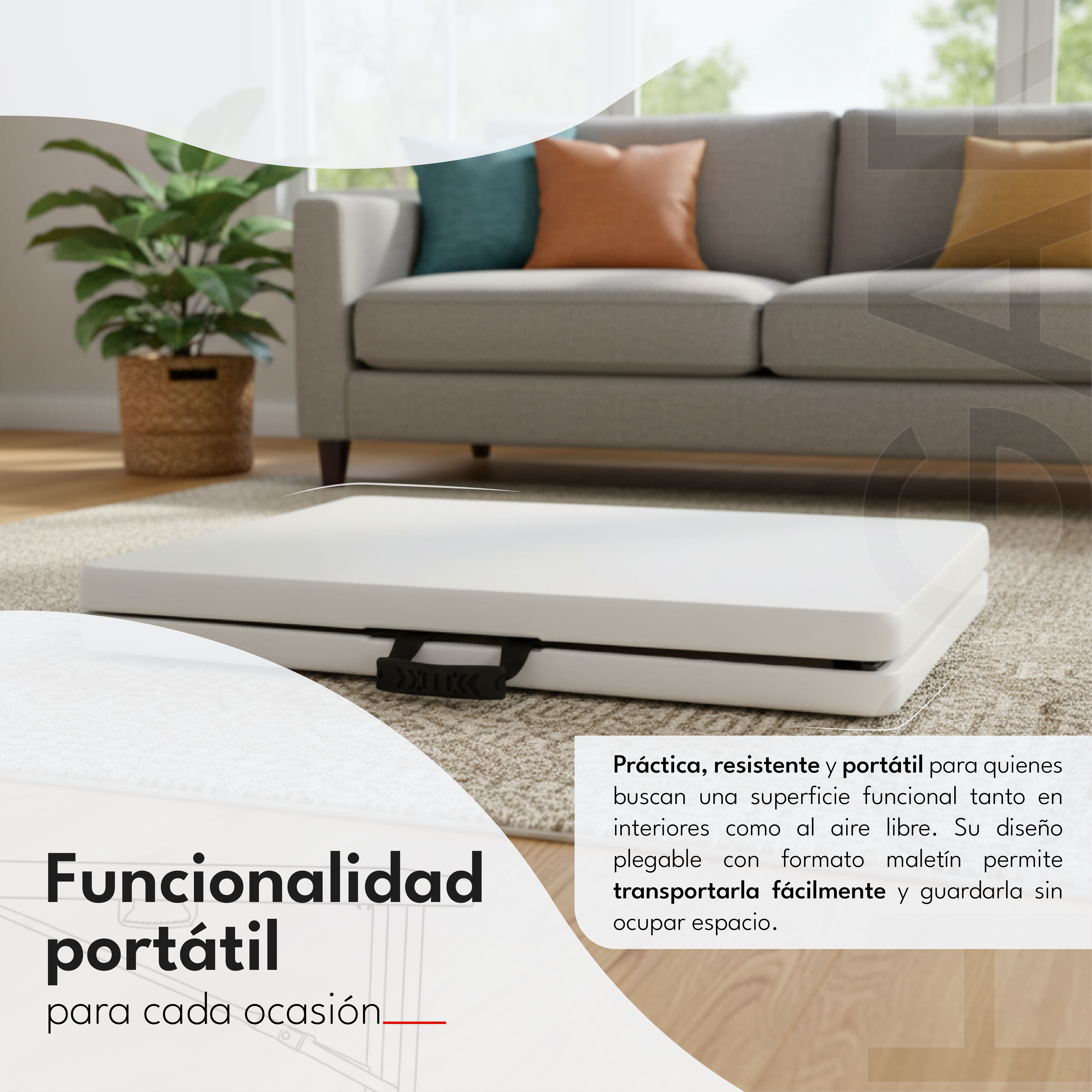 Porque es compacta, resistente y liviana. No requiere herramientas para el armado, e incluye un asa para facilitar el traslado. Soporta hasta 6 personas cómodamente y su formato rectangular se adapta a múltiples usos.
