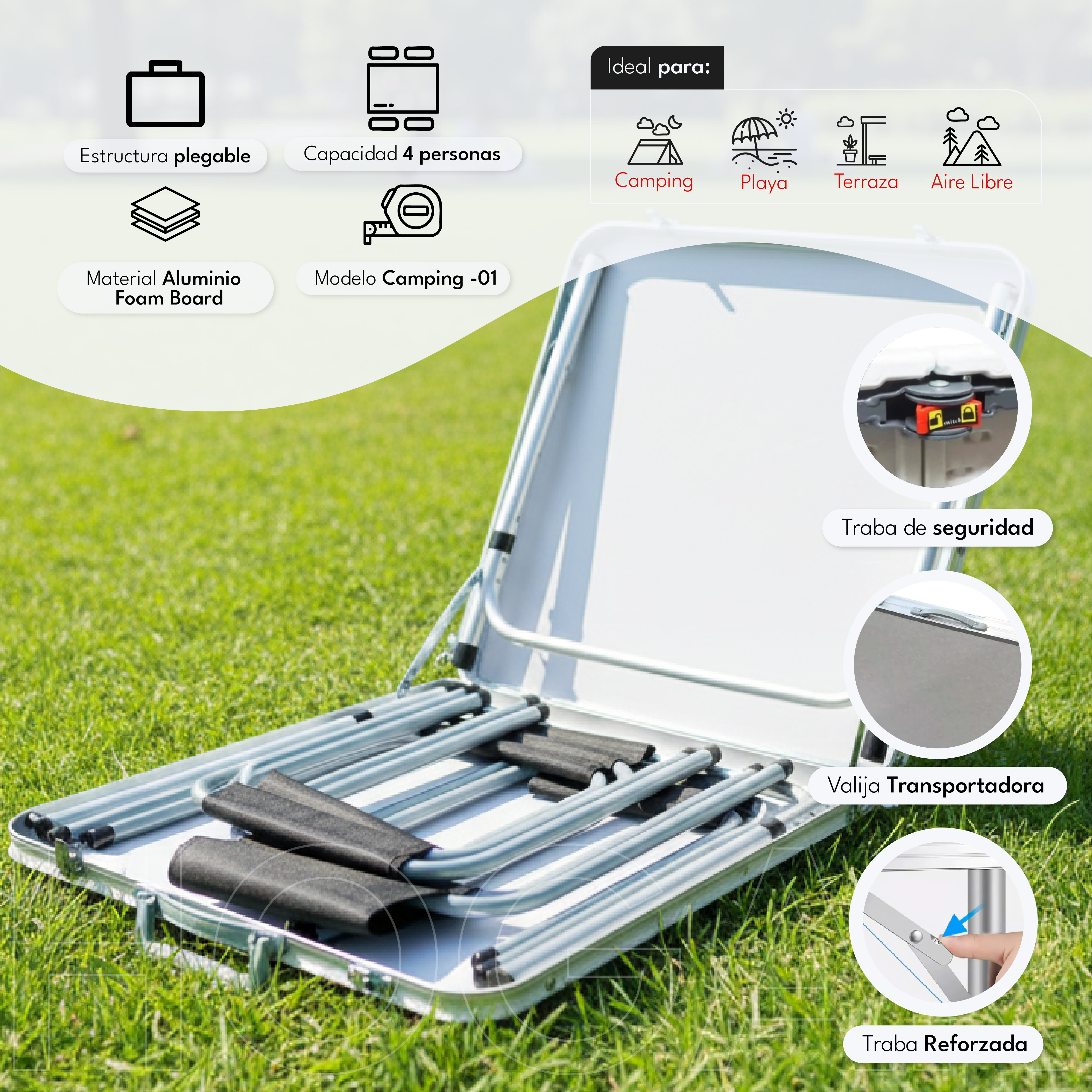 Porque combina portabilidad, resistencia y fácil armado. No requiere herramientas para el ensamblado, y una vez cerrada ocupa muy poco espacio. Ideal para quienes buscan soluciones prácticas y eficientes tanto en exteriores como en interiores.