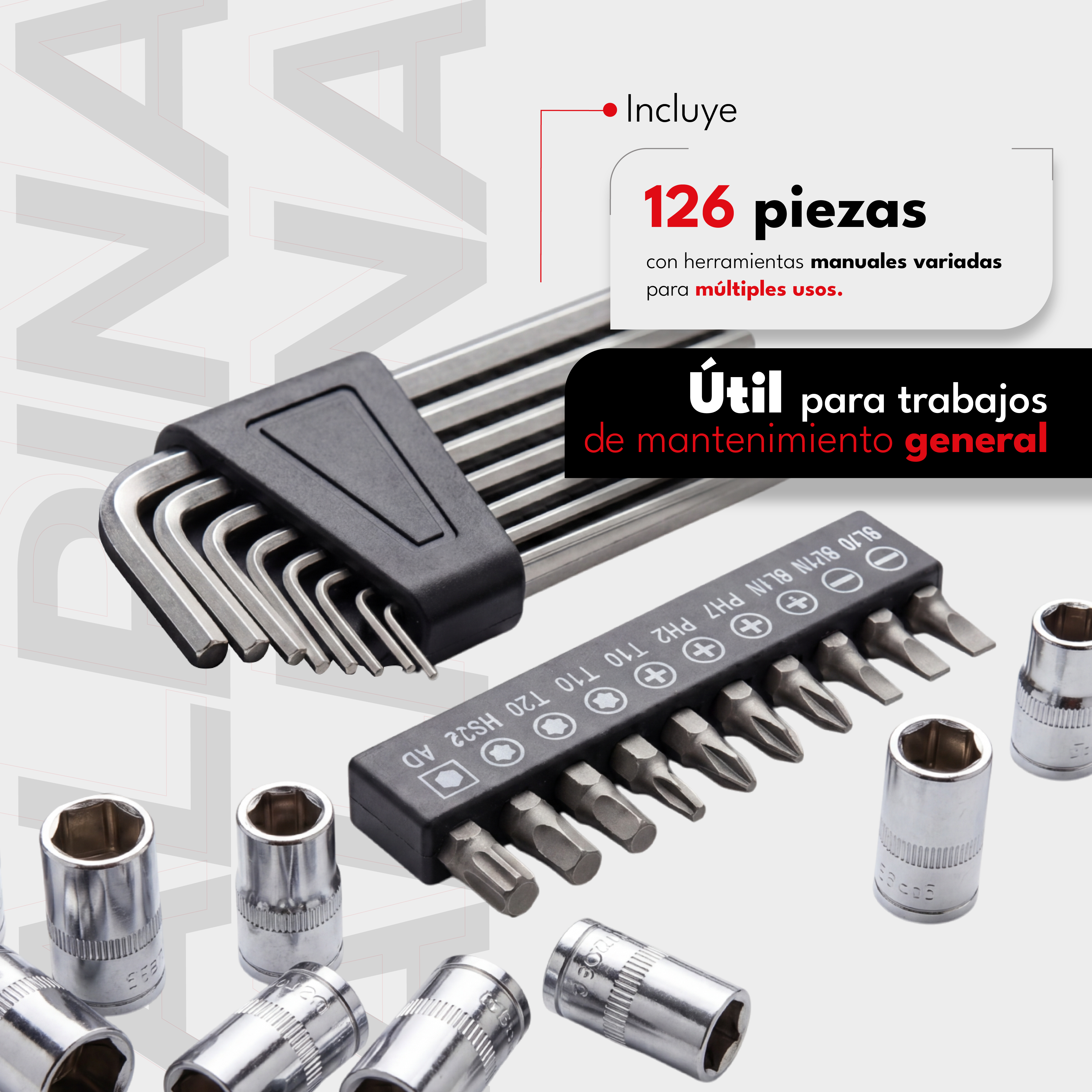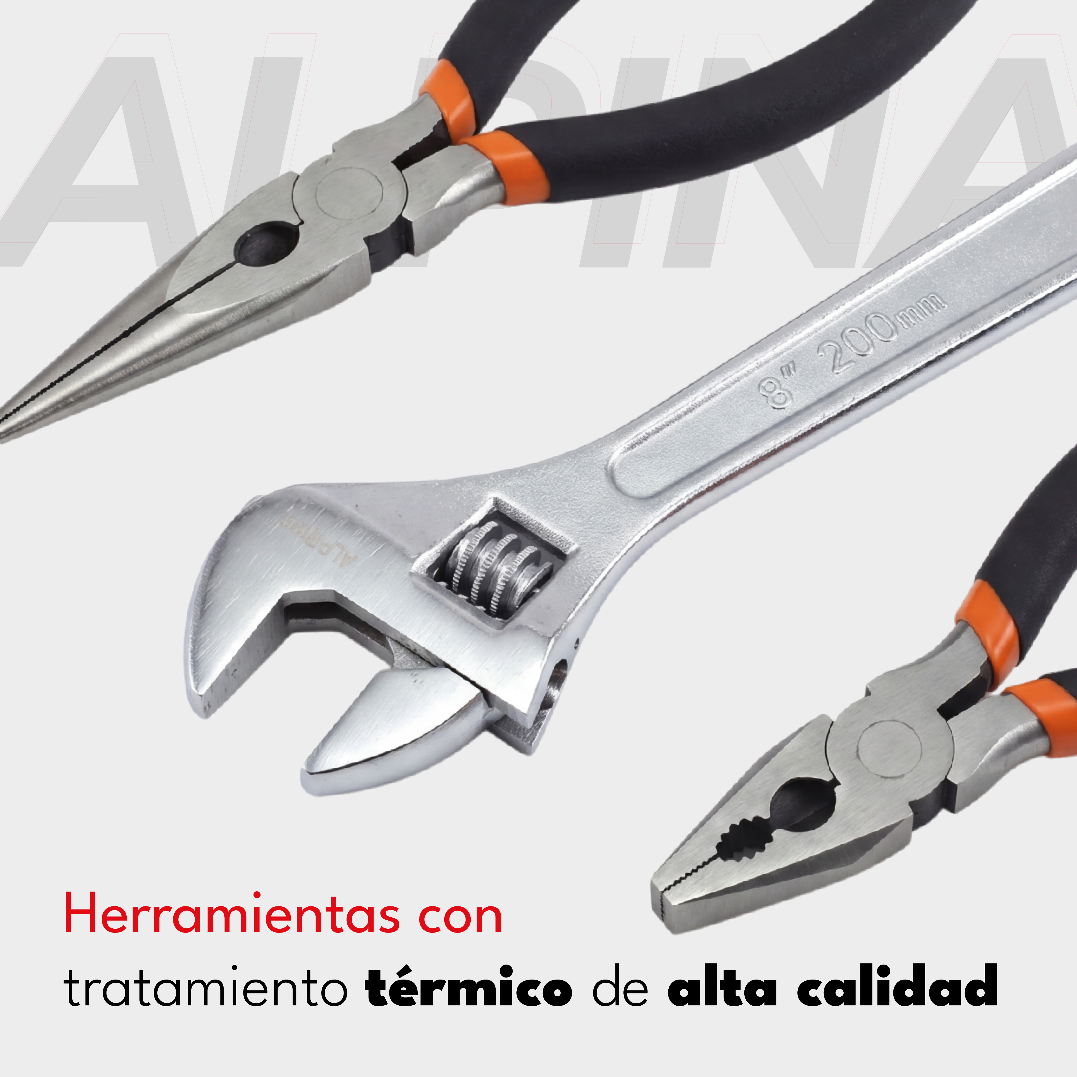 Organizá tu espacio de trabajo y resolvé tareas cotidianas con el Set de Herramientas Alpina de 126 piezas. Diseñado para el uso doméstico, profesional o automotriz, ofrece una solución completa, práctica y portátil gracias a su maletín organizador rígido y herramientas con tratamiento térmico de alta calidad.
