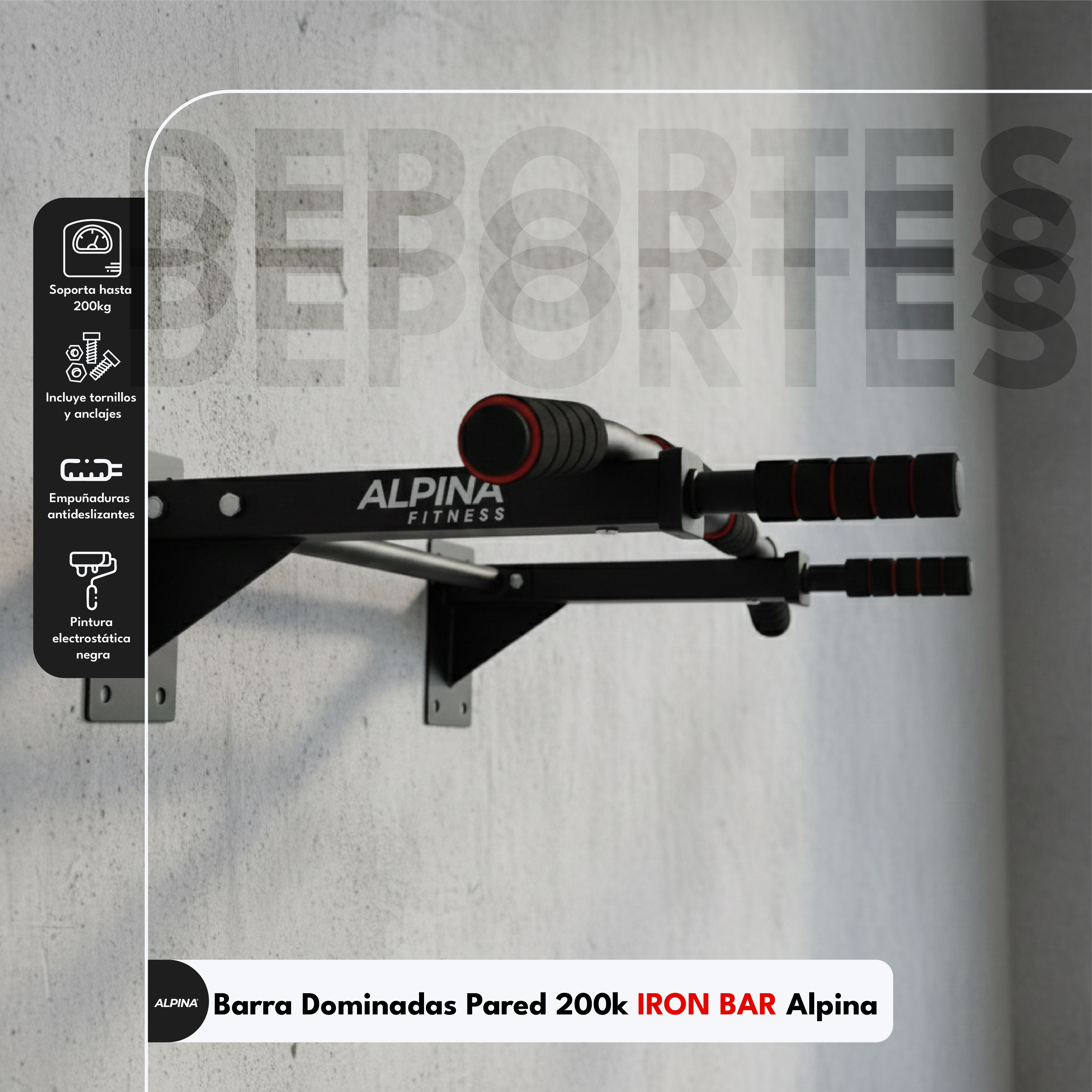 La Barra de Dominadas Alpina Iron Bar está diseñada para quienes buscan un entrenamiento de alto rendimiento desde casa. Fabricada en acero reforzado de uso profesional, ofrece una capacidad de carga excepcional de hasta 200 kg, brindando la estabilidad y seguridad necesarias para rutinas intensivas de crossfit, calistenia o entrenamiento funcional.