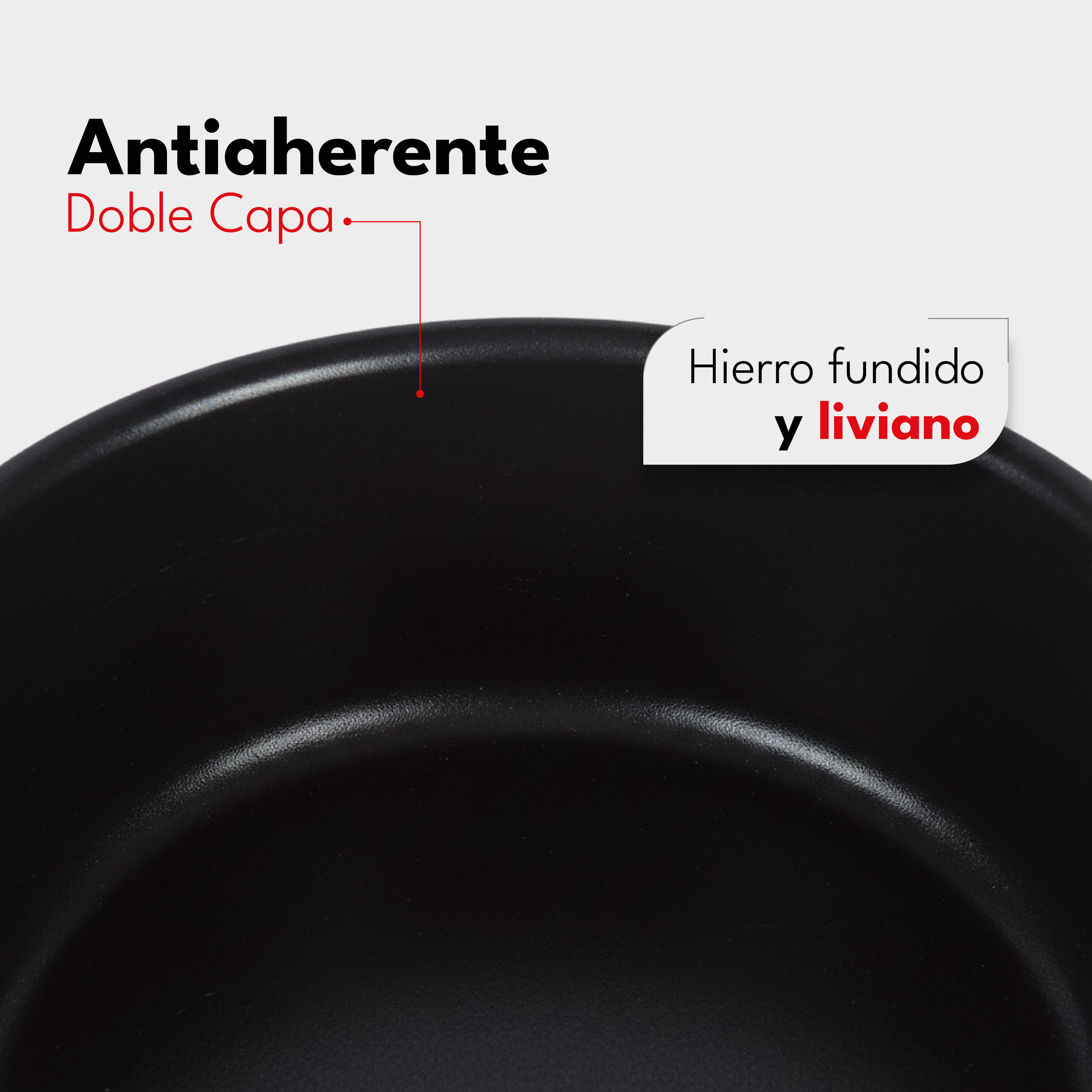 | Materiales | Hierro fundido con revestimiento antiadherente |
