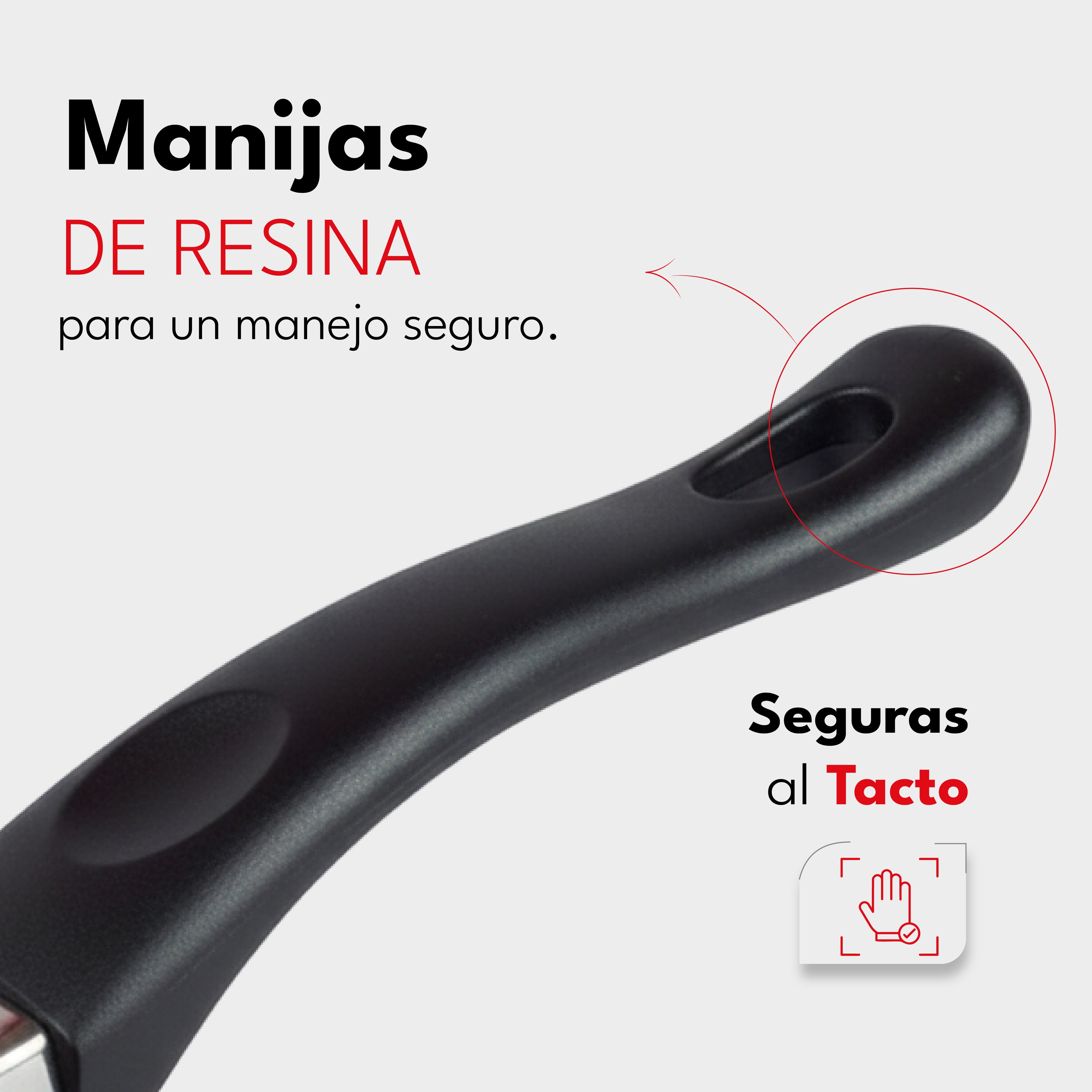 A diferencia de las ollas convencionales, esta batería ofrece mayor resistencia al uso cotidiano, incluye manijas de resina seguras al tacto y tapas de vidrio templado que permiten controlar la cocción en todo momento. Además, son aptas para cocinas a gas e inducción, lo que las convierte en un set versátil para cualquier tipo de hogar.