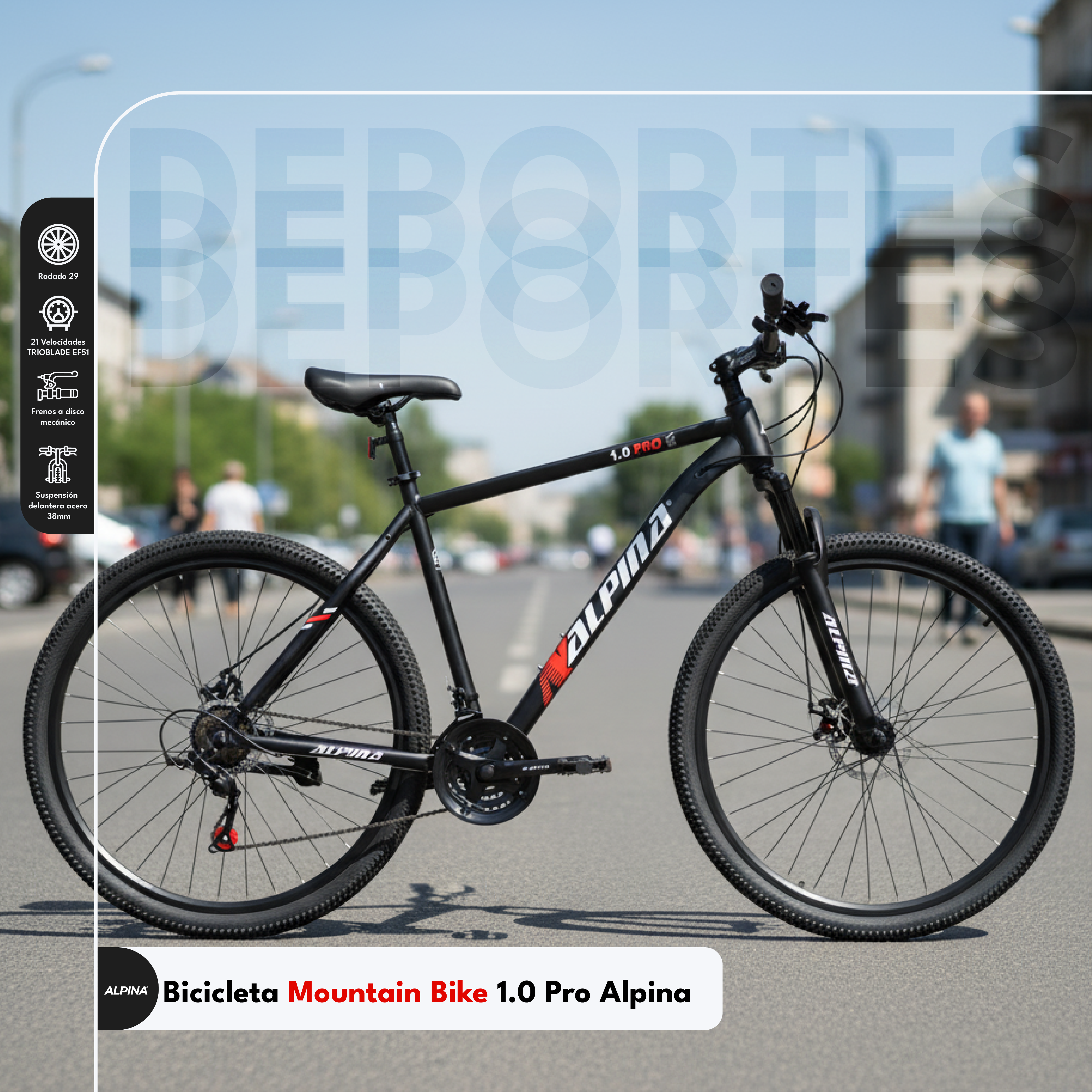 La Bicicleta Alpina Mountain Bike 1.0 Pro Rodado 29 está diseñada para quienes buscan rendimiento, resistencia y comodidad en cada pedaleo. Ideal para ciudad o montaña, combina una estructura reforzada con componentes de alta calidad que garantizan una conducción estable, segura y eficiente en cualquier tipo de terreno.