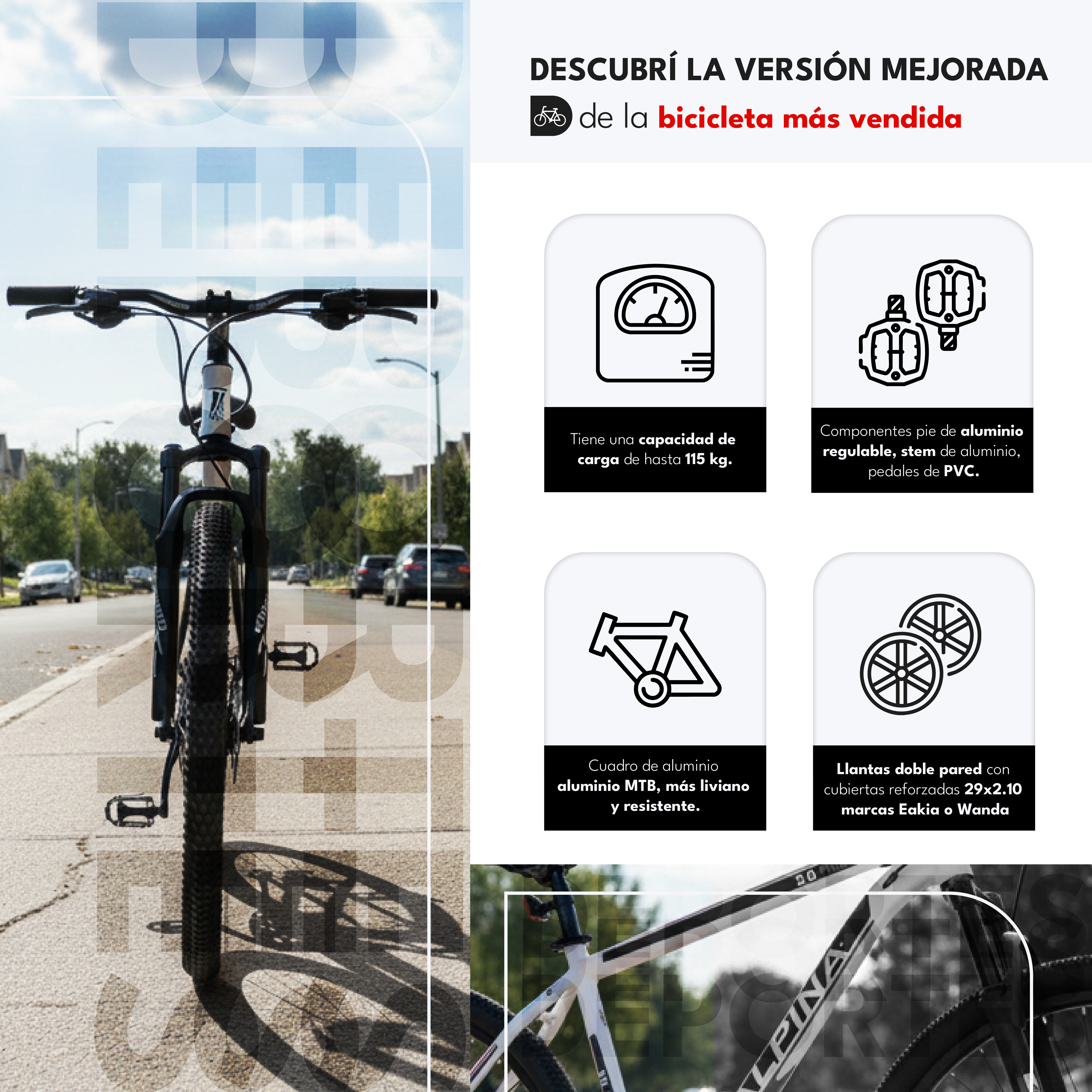 Descubrí la versión mejorada de la bicicleta más vendida en Mercado Libre: la Alpina 2.0 Pro Edición Limitada Ultra. Diseñada con un cuadro de aluminio más liviano, shifters Shimano EF41, horquilla con regulación y bloqueo y cubiertas reforzadas, esta bicicleta ofrece mayor rendimiento, durabilidad y estilo para todos tus recorridos.