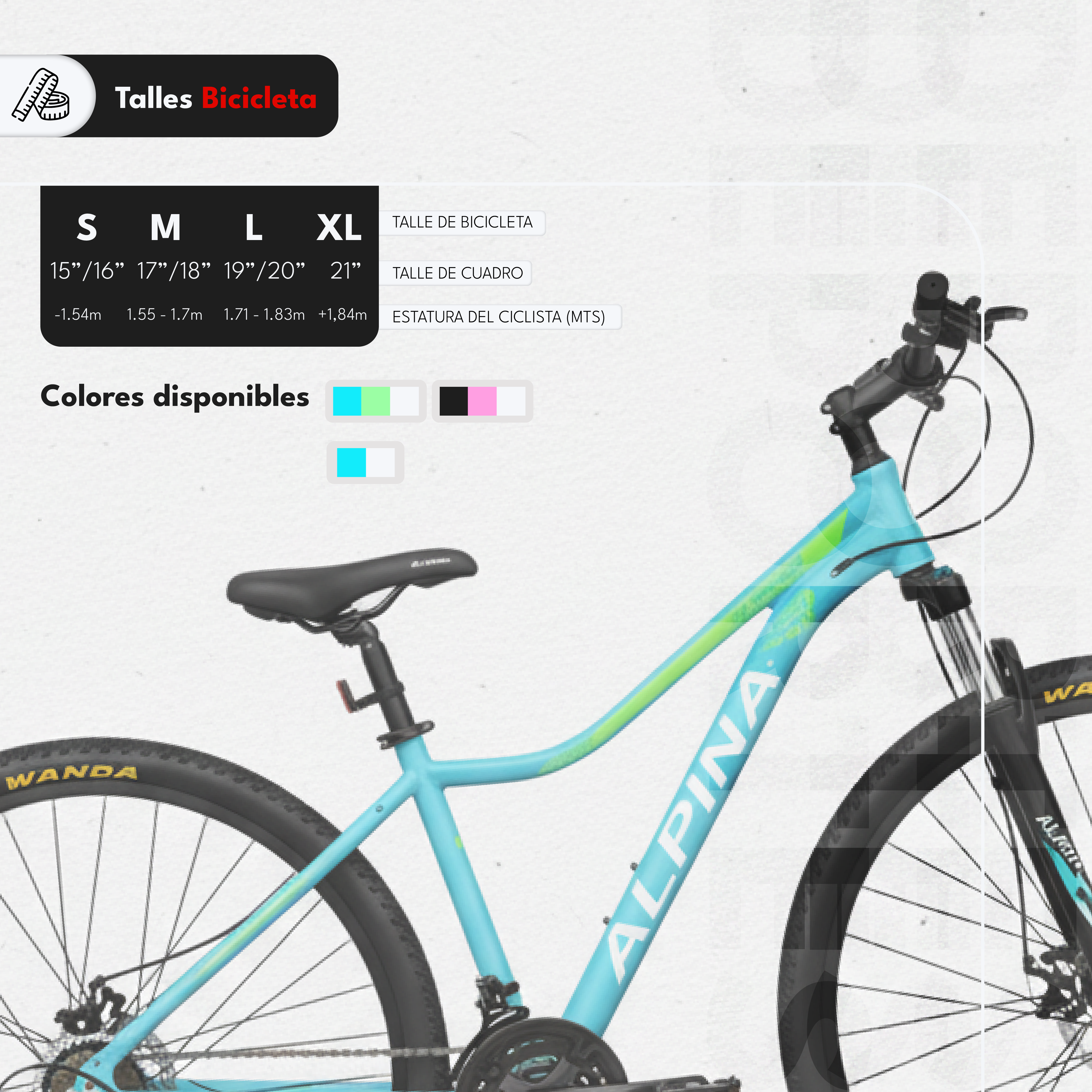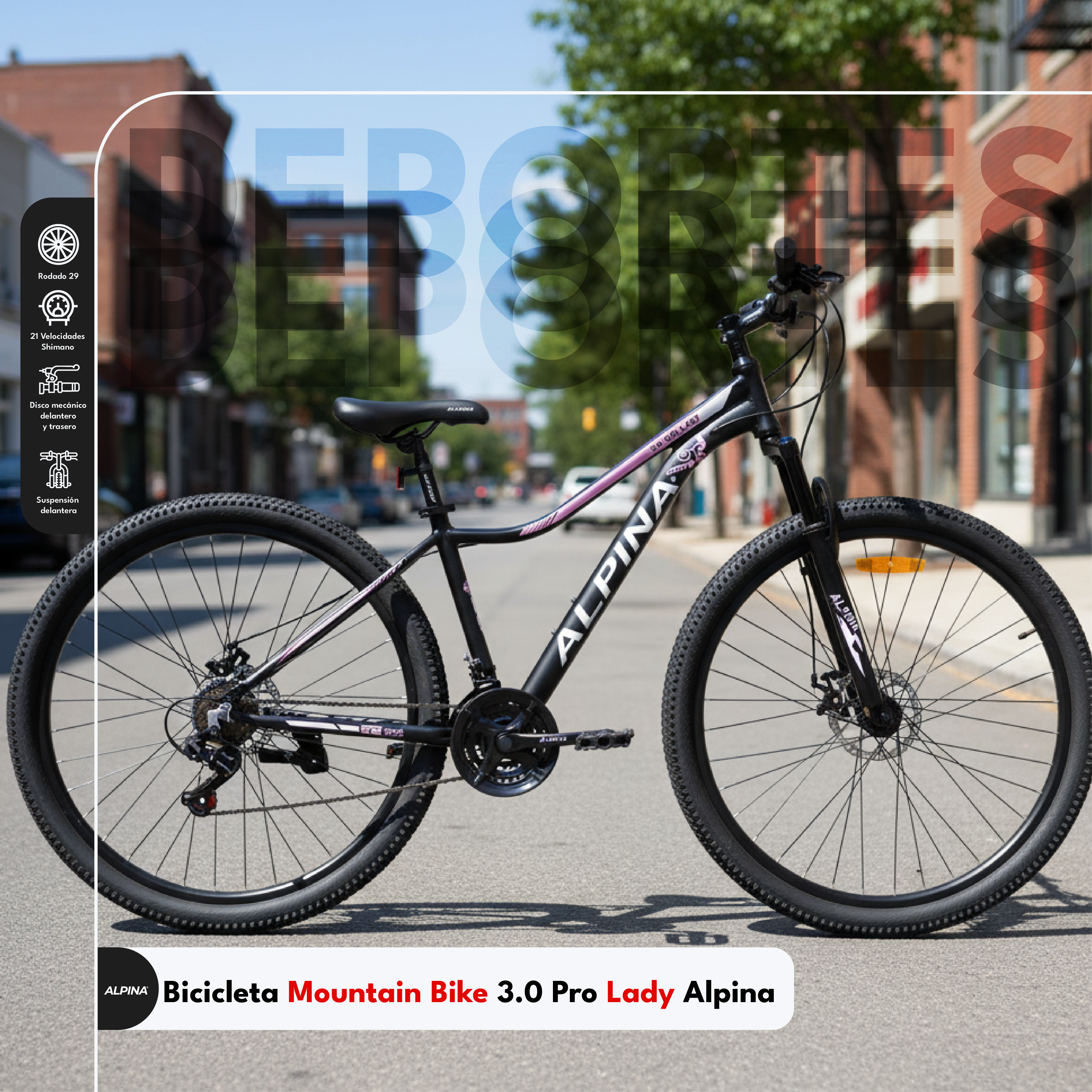 La Alpina 3.0 Pro Lady es la compañera perfecta para quienes buscan una bicicleta confiable, con componentes de calidad y preparada para la exigencia de la montaña. Su diseño robusto y ligero garantiza conducción estable, segura y de alto rendimiento.