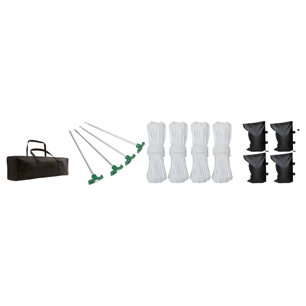 | Incluye estacas, cuerdas y sacos de arena | Sí, set completo de fijación incluido |