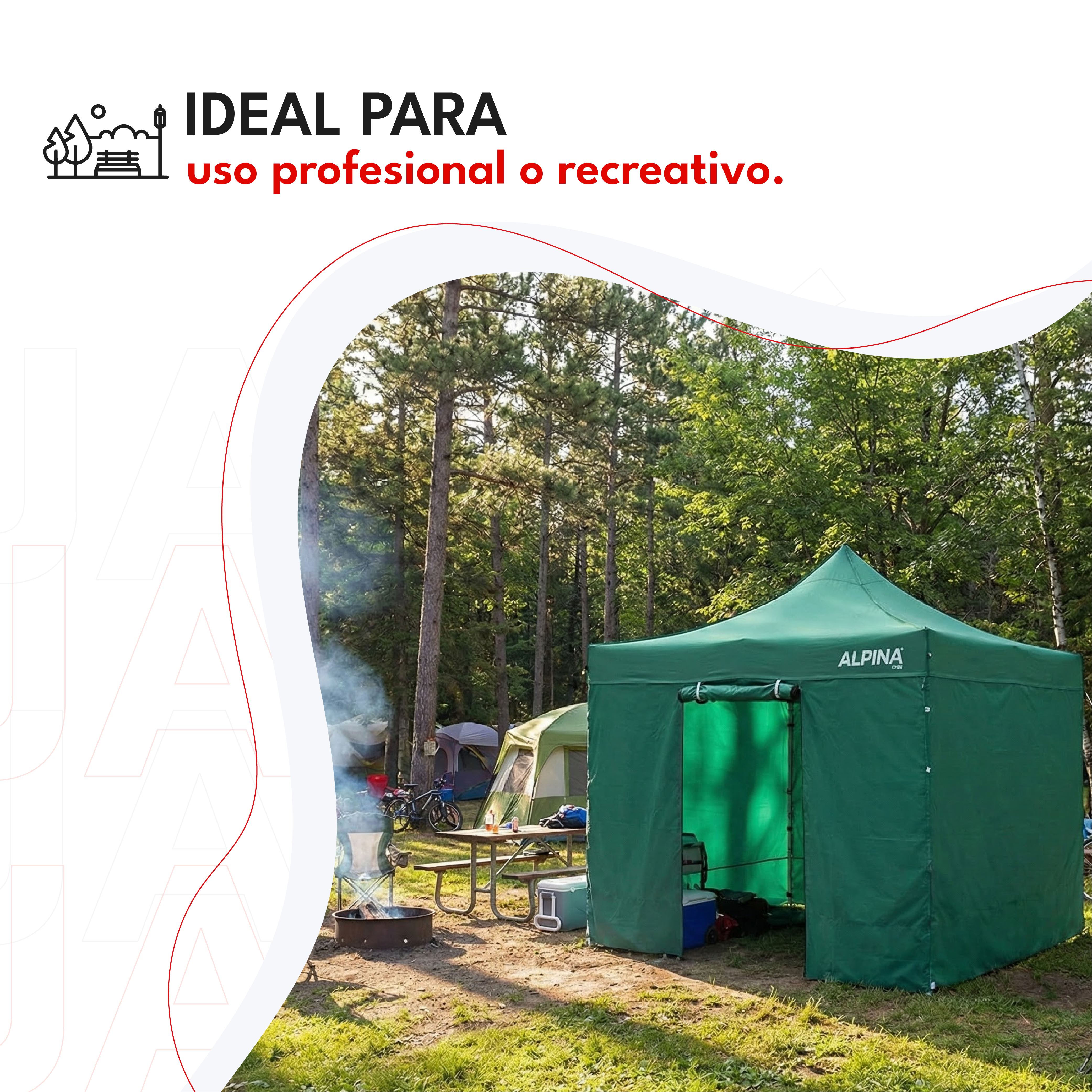 El Gazebo Alpina Safe Tent está diseñado para brindar protección total, confort y resistencia en todo tipo de actividades al aire libre. Ideal para camping, ferias, playa, eventos o reuniones familiares, ofrece una cobertura completa frente al sol, el viento o la lluvia, garantizando un espacio seguro y práctico en cualquier entorno.