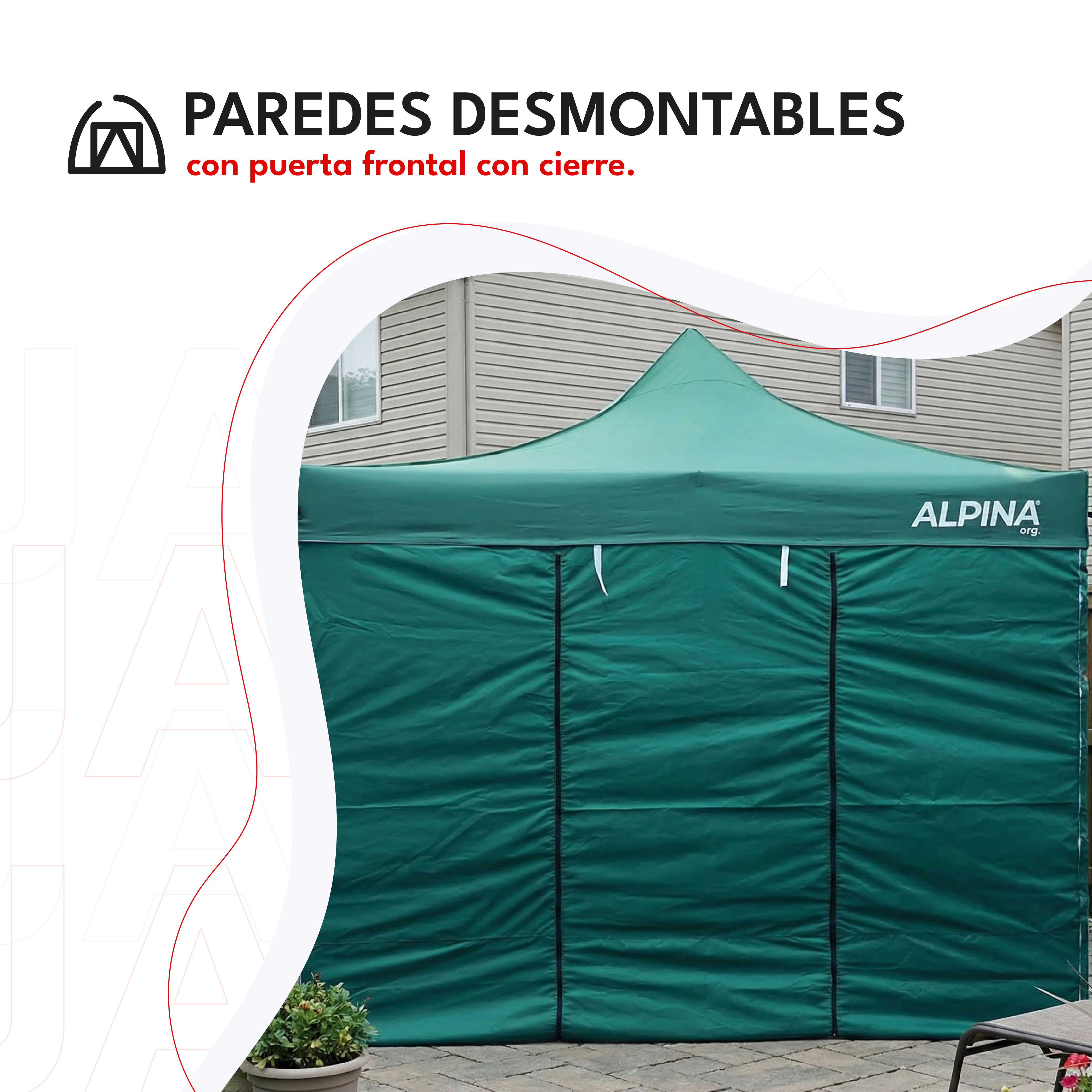 Su estructura de acero de alta densidad de 20 kilos (28 kilos en total armado) brinda una estabilidad superior incluso en condiciones exigentes, mientras que la lona Oxford 800D PVC en el techo combinada con Oxford 420D en las paredes ofrece impermeabilidad total y protección UV. Incluye cuatro paredes desmontables, una de ellas con puerta frontal con cierre, que permiten adaptar el espacio según tus necesidades. Además, su sistema autoarmable y plegable permite un armado rápido sin herramientas, facilitando el transporte y almacenamiento.