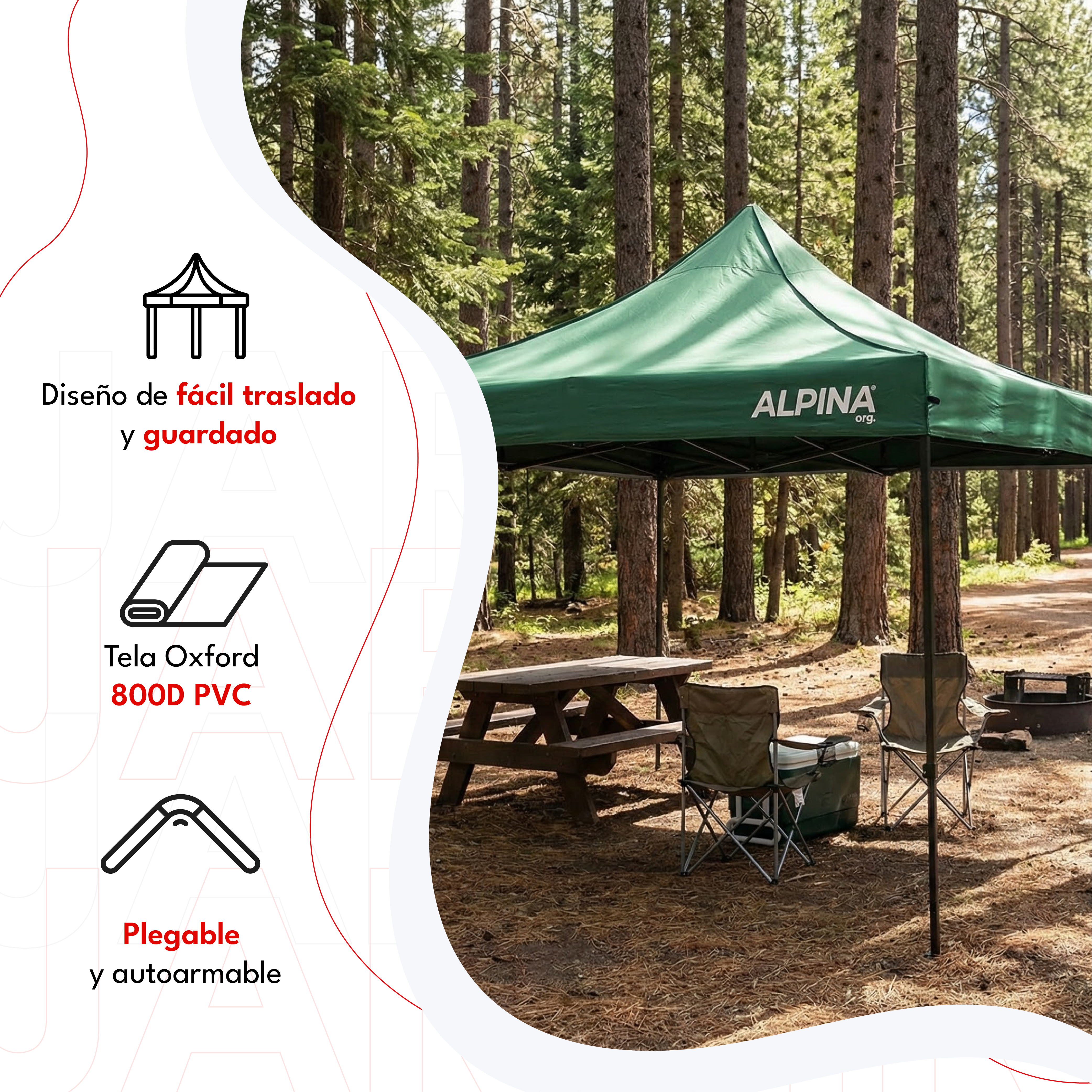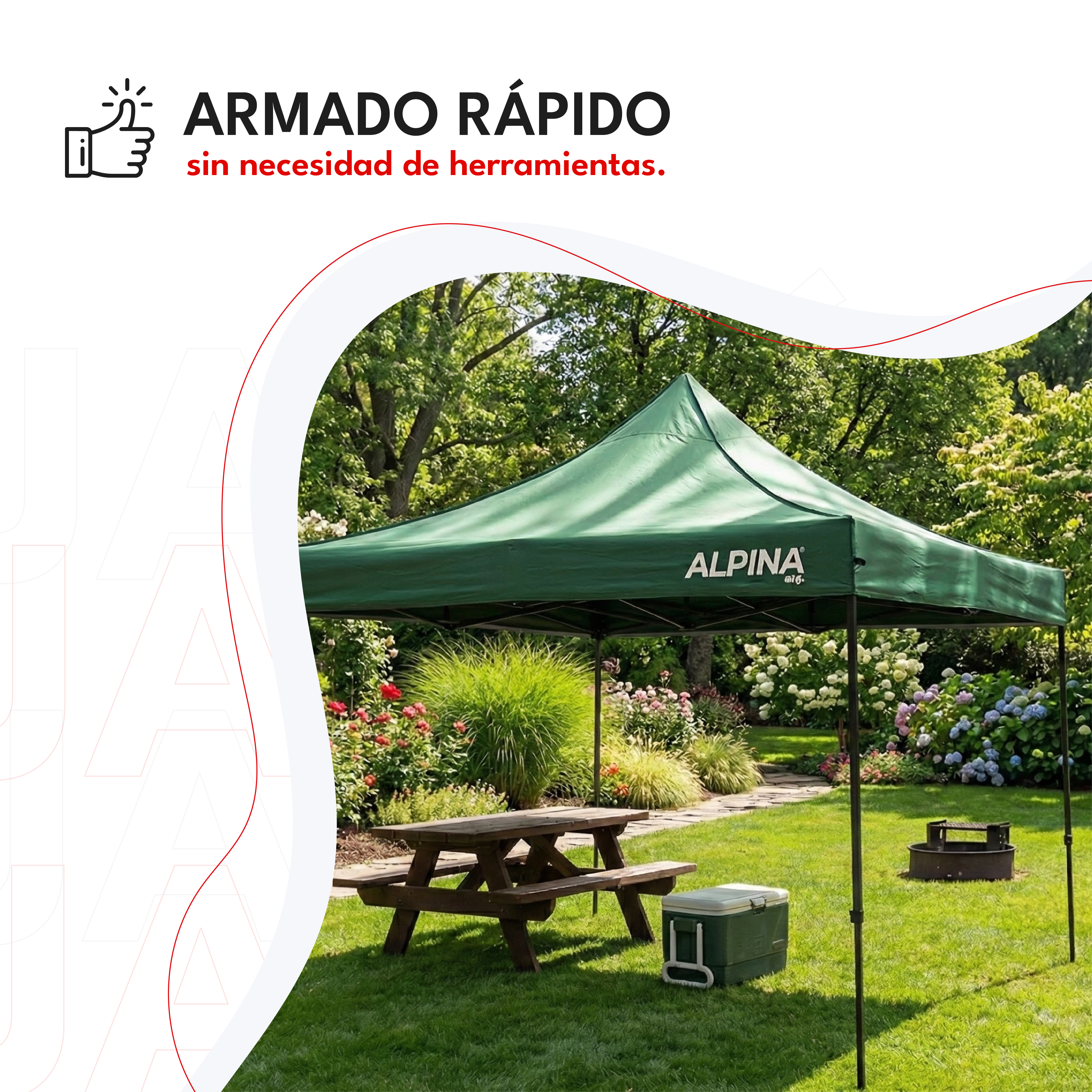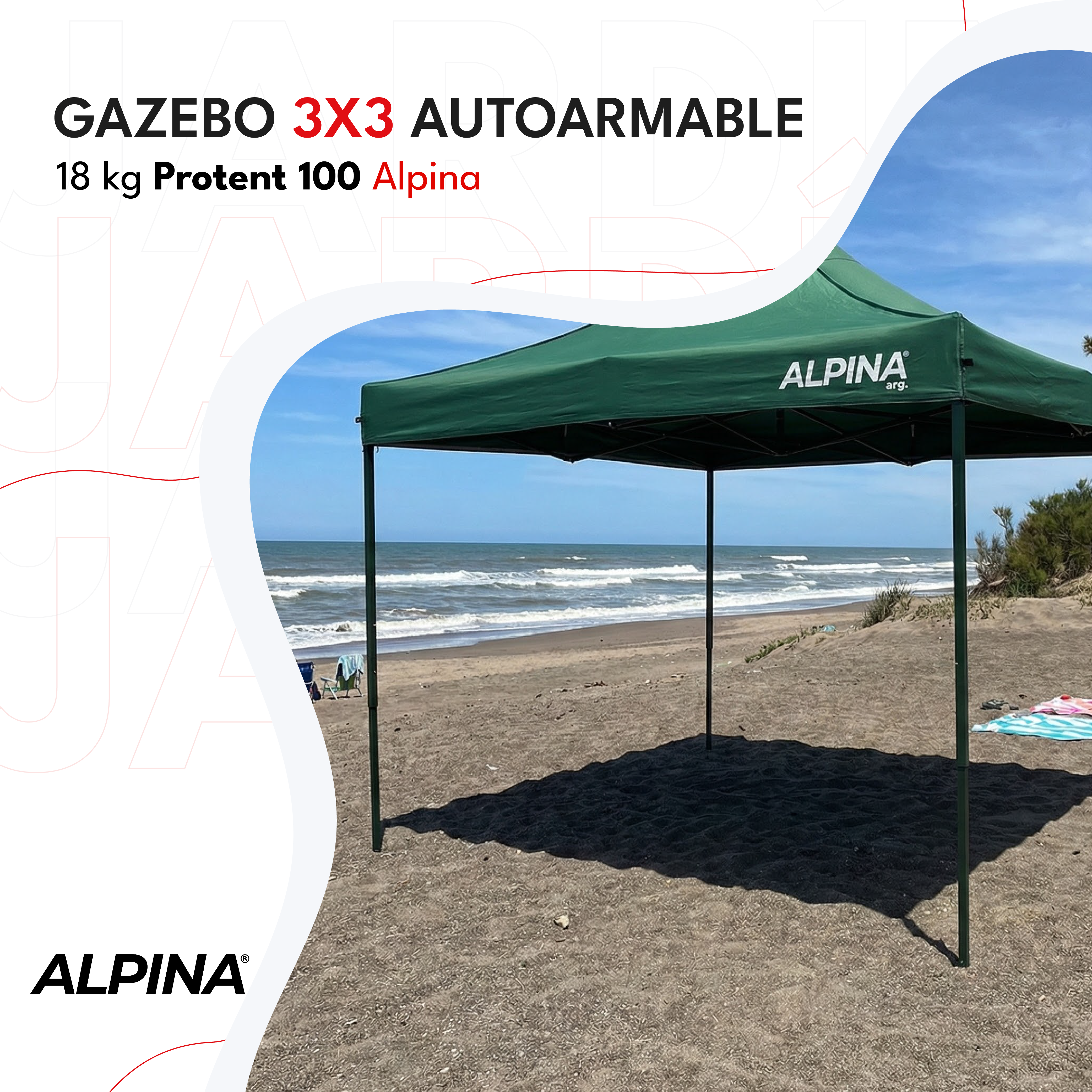 El Gazebo Alpina Protent 100 es la elección ideal para quienes buscan protección, resistencia y practicidad en sus actividades al aire libre. Perfecto para playa, camping, ferias, patios o eventos, ofrece un equilibrio entre robustez, facilidad de uso y diseño profesional. Su sistema autoarmable permite un montaje rápido y sencillo, sin necesidad de herramientas, garantizando comodidad y eficiencia en cada uso.