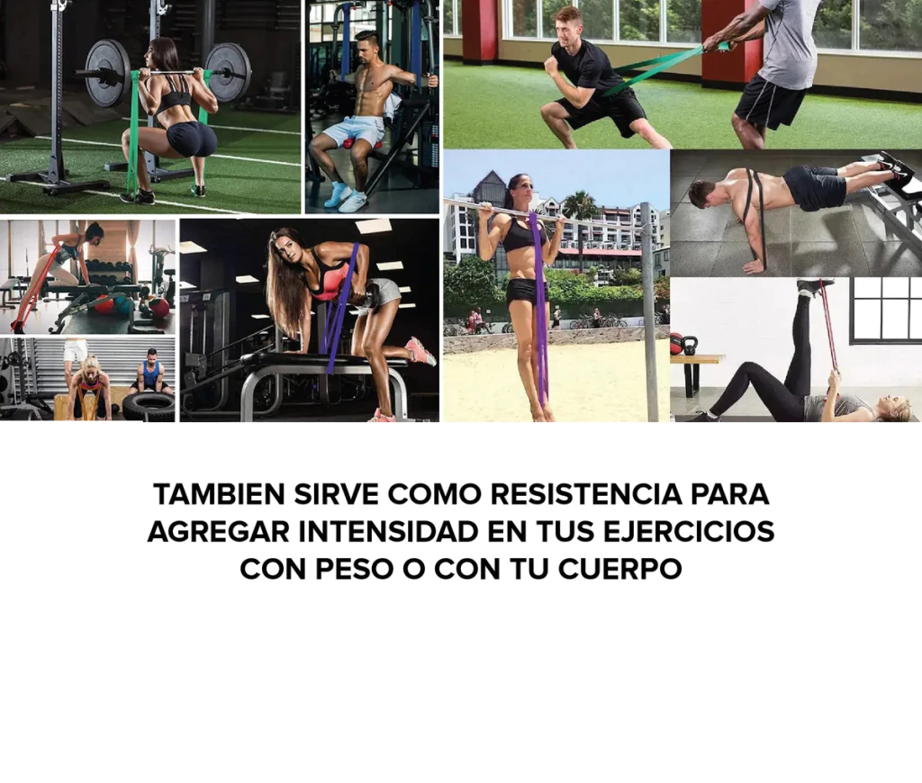 Fabricadas en caucho termoplástico (TPE) de alta calidad, ofrecen un estiramiento uniforme, seguro y antideslizante. Su formato cerrado tipo loop permite trabajar todos los grupos musculares, tanto del tren superior como inferior, con movimientos naturales y controlados.