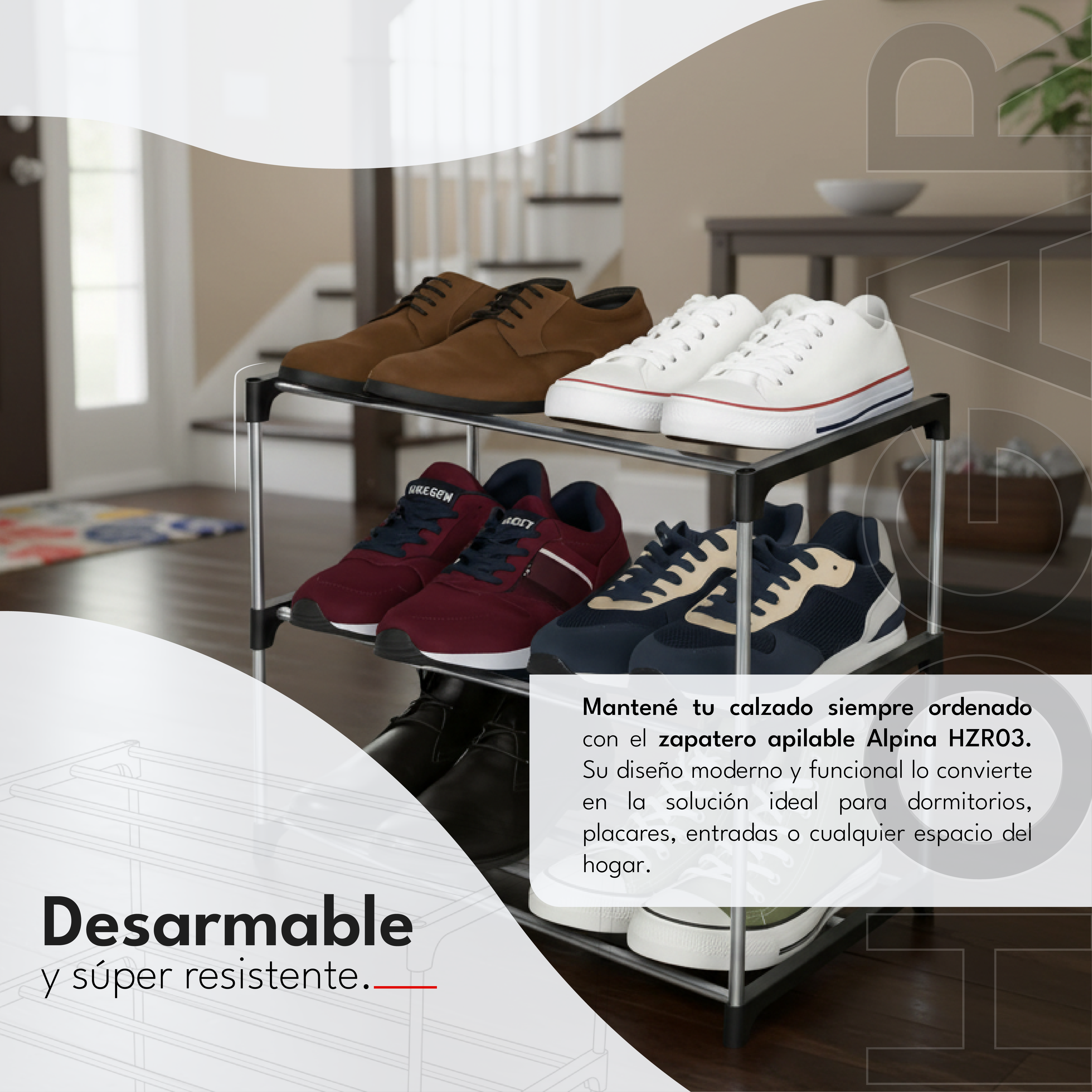 El Alpina HZR03 es la opción perfecta para quienes buscan un organizador funcional, liviano y estético. Ideal para mantener el calzado al alcance y el hogar libre de desorden.