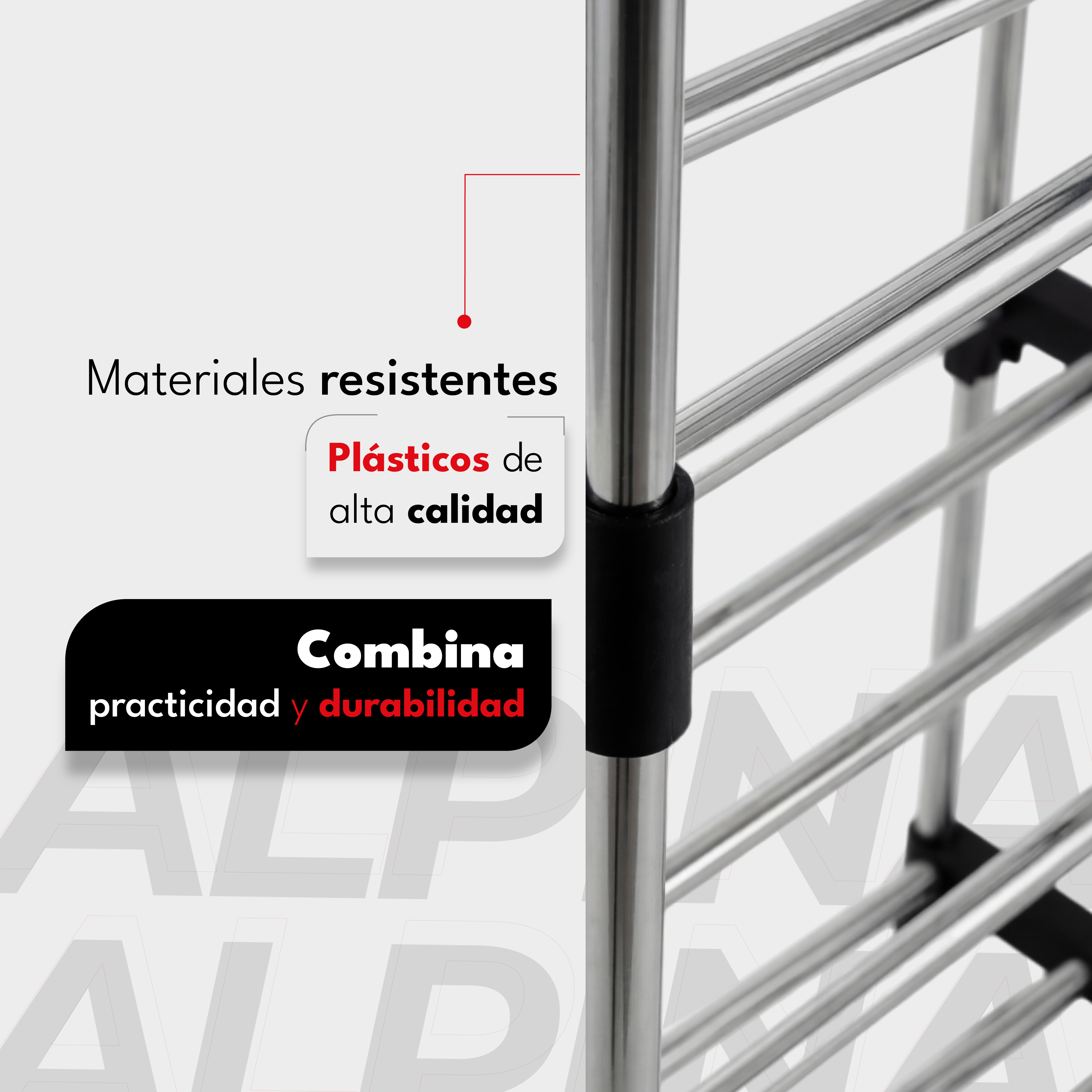 A diferencia de los organizadores convencionales, este zapatero es apilable, desarmable y súper resistente. Fabricado en plástico de alta calidad y tubería galvanizada, combina practicidad y durabilidad. Su estructura ligera y fácil de armar te permite adaptarlo a tus necesidades de espacio, ampliando la capacidad con más módulos si lo deseás.