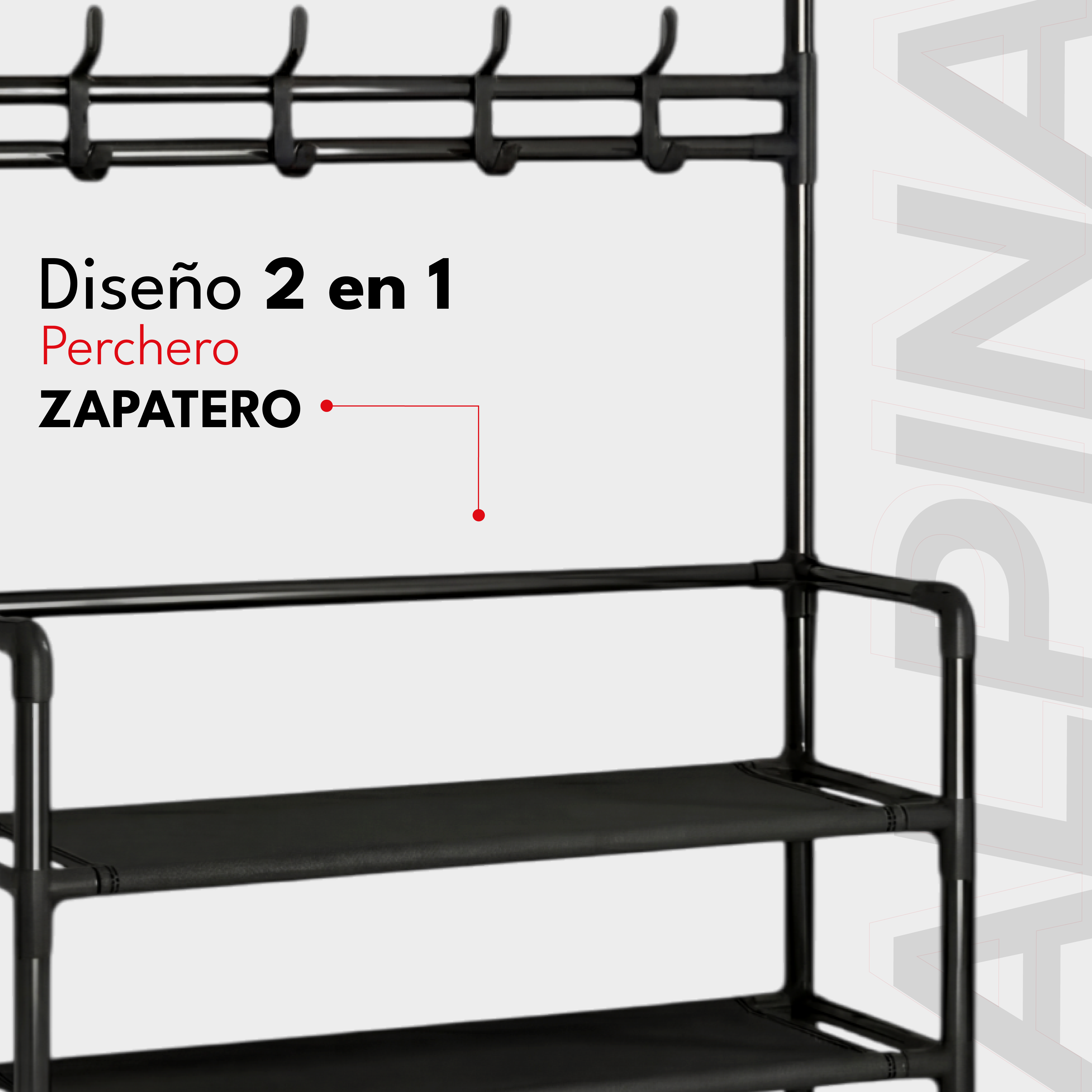 Ordená tu hogar con estilo y practicidad gracias al organizador multifunción Alpina HZP01. Una estructura resistente y elegante que combina perchero y zapatero, ideal para optimizar el espacio en cualquier ambiente.
