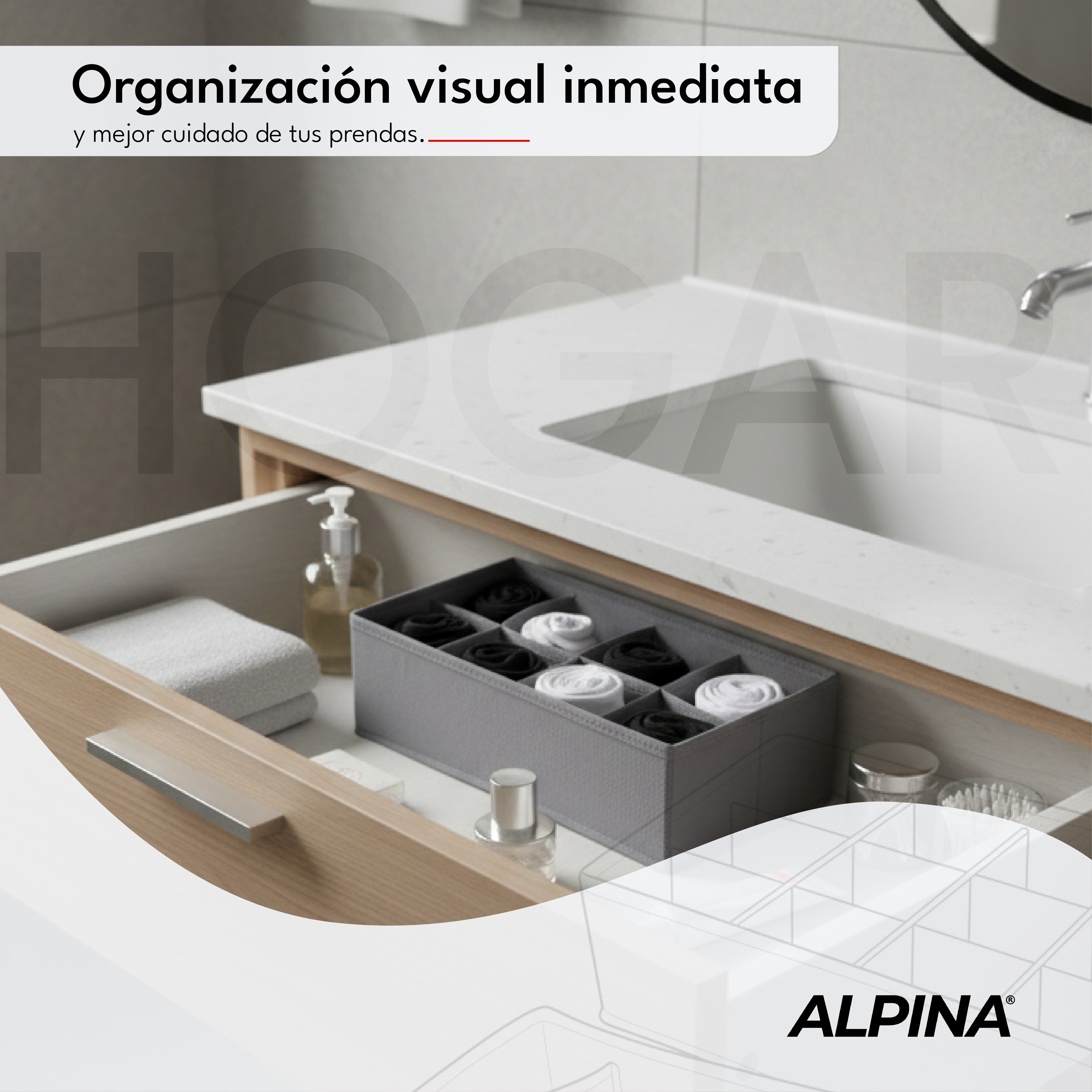 El Alpina HORI4 te permite ahorrar espacio y tiempo, brindando una organización visual inmediata y mejor cuidado de tus prendas. Perfecto para lograr cajones prolijos y funcionales.