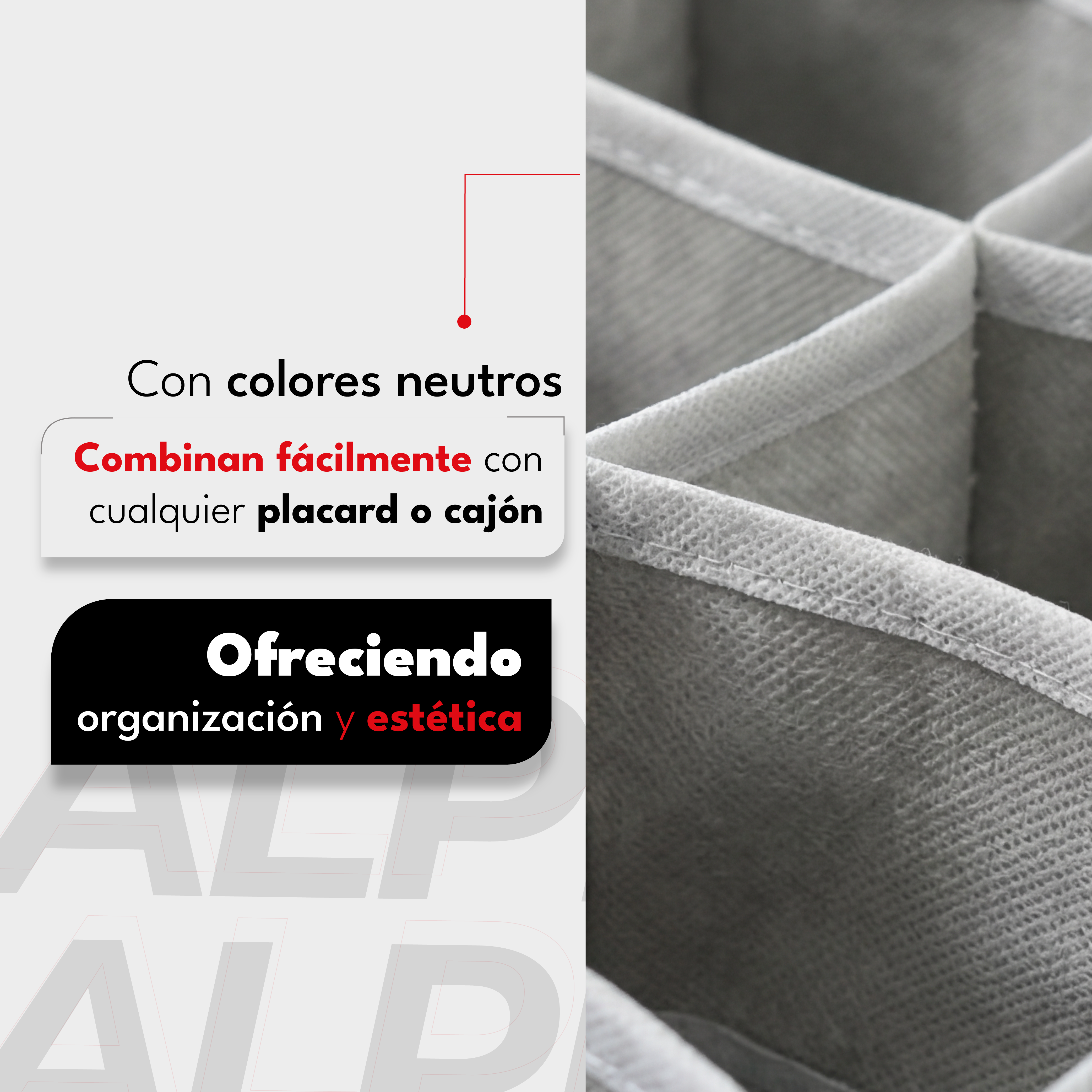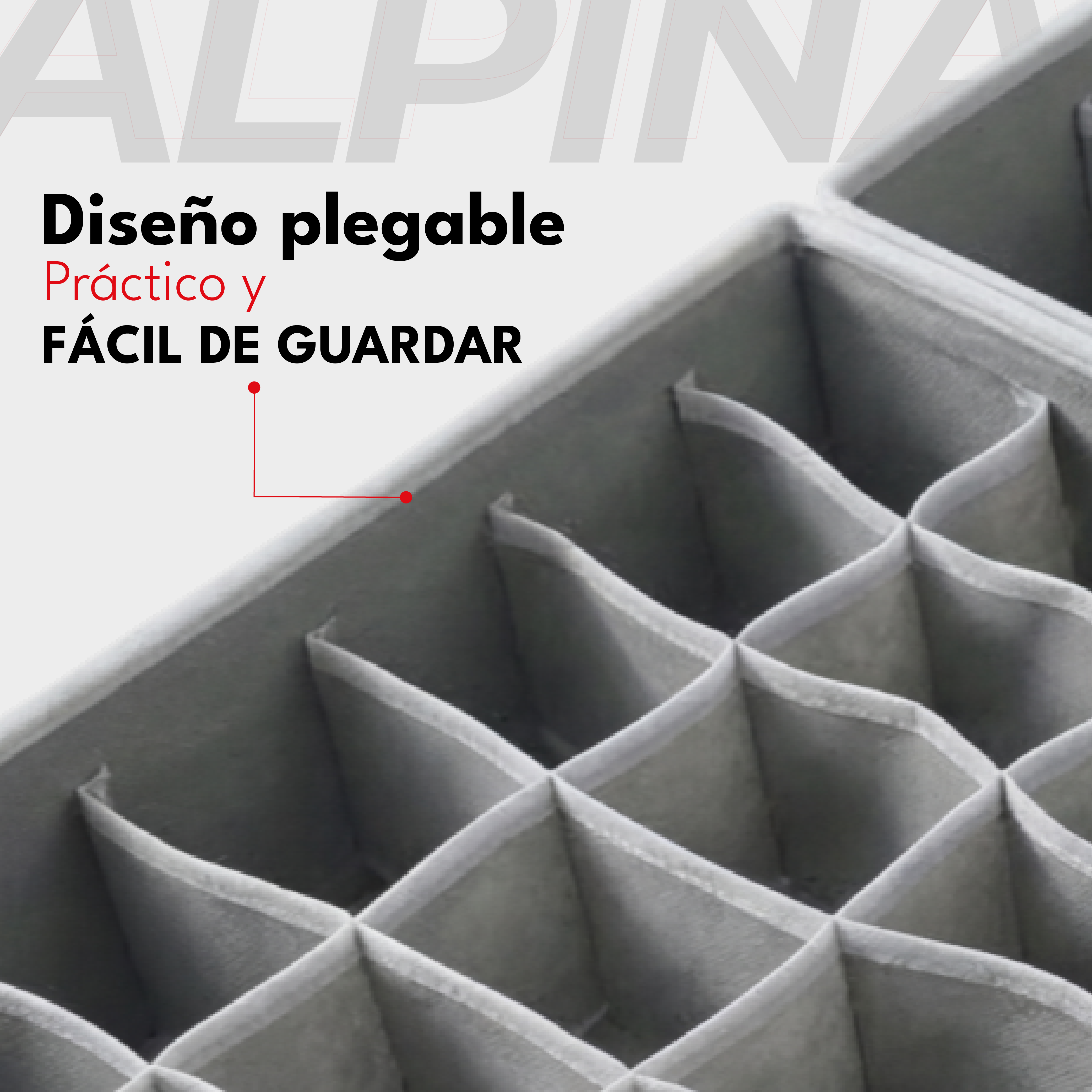 El Alpina HORI4 te permite ahorrar espacio y tiempo, brindando una organización visual inmediata y mejor cuidado de tus prendas. Perfecto para lograr cajones prolijos y funcionales.