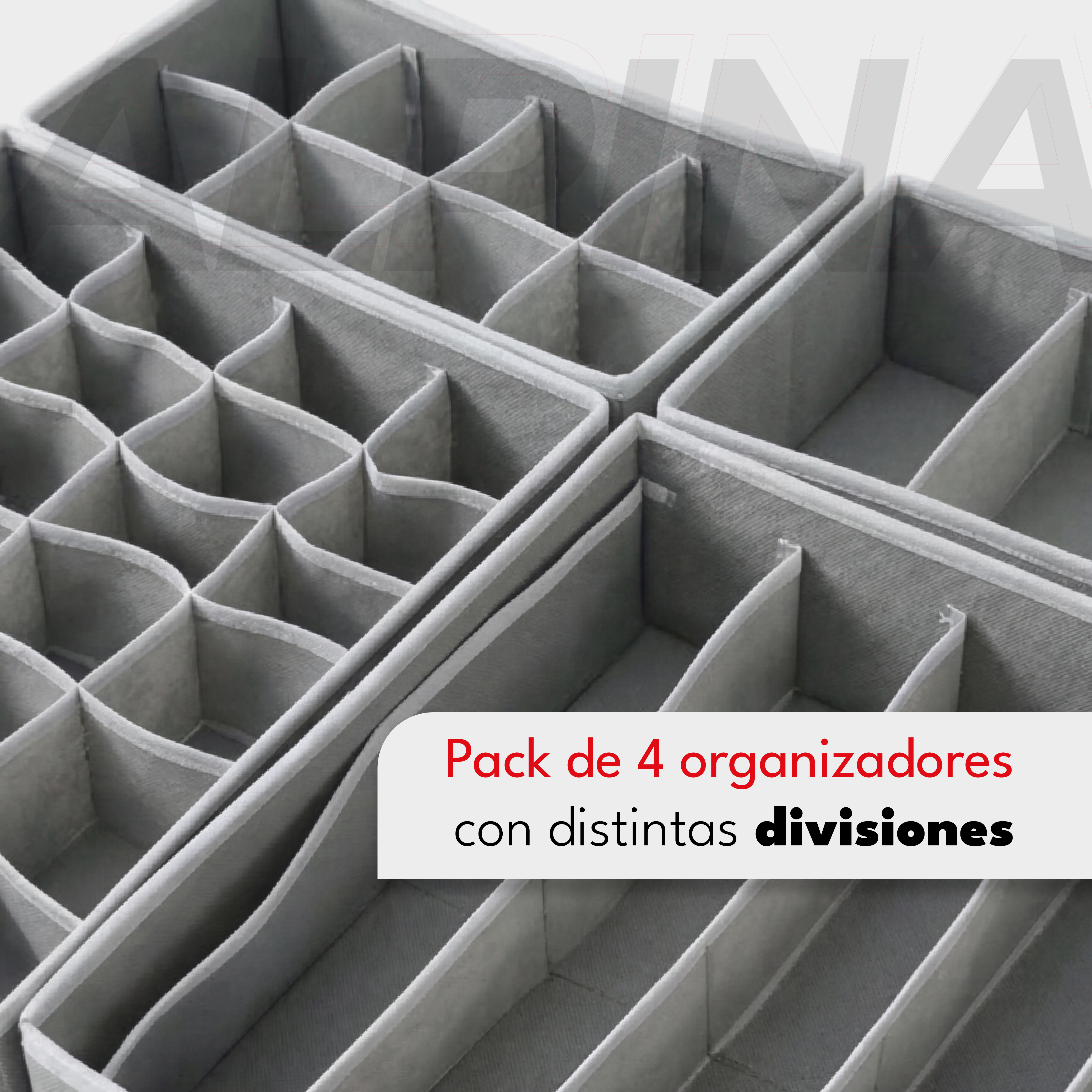 Decile adiós al desorden con el set de organizadores Alpina HORI4. Diseñado para mantener tus cajones prolijos y tu ropa interior perfectamente distribuida, es ideal para bombachas, corpiños, medias, boxers y más.