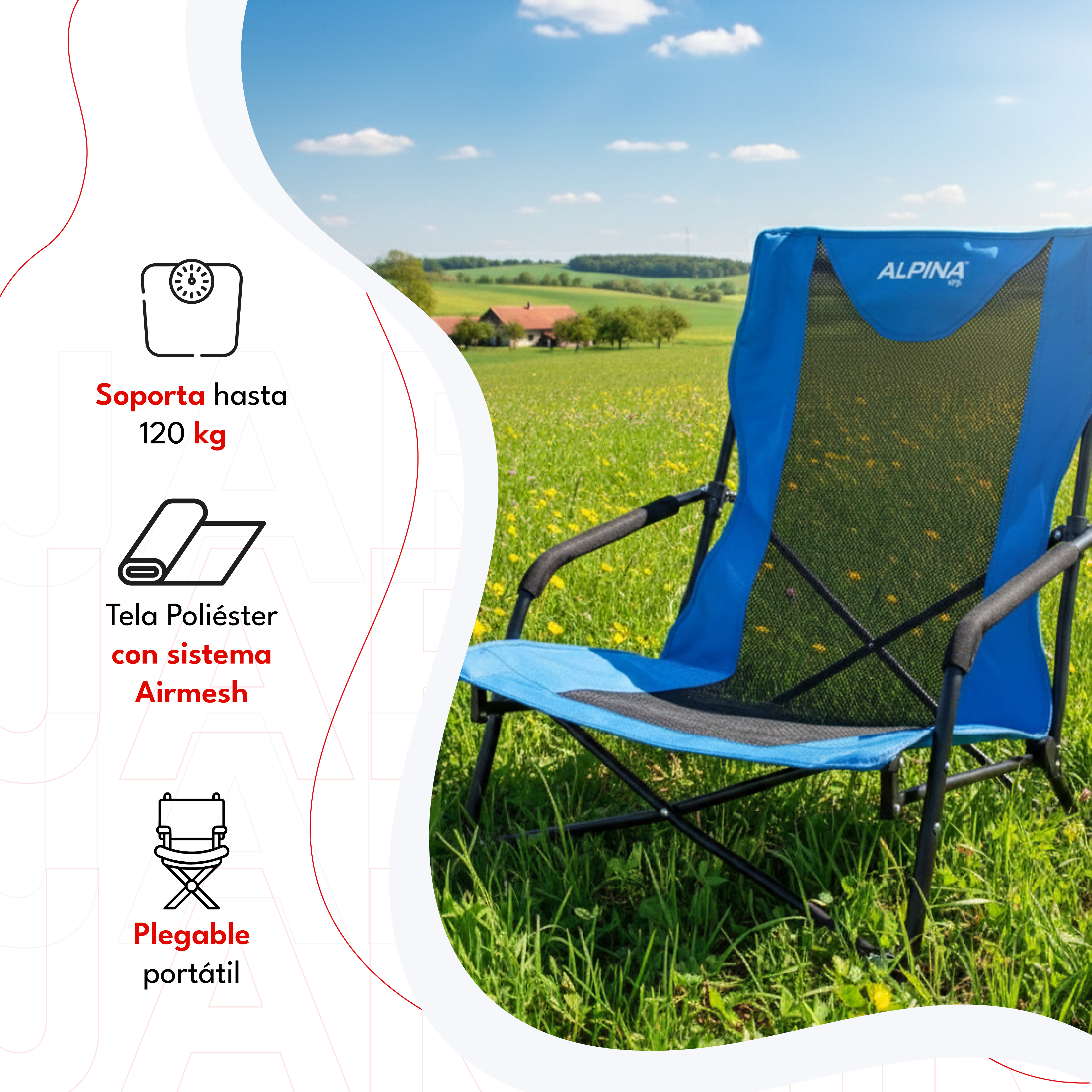 La Silla Alpina Fold 70 está pensada para quienes disfrutan de la comodidad en cualquier lugar. Ideal para playa, camping, pesca o jornadas al aire libre, combina resistencia, diseño ergonómico y un sistema plegable que facilita su transporte y almacenamiento. Con materiales de primera calidad y un estilo moderno, es tu compañera perfecta para el descanso y la aventura.