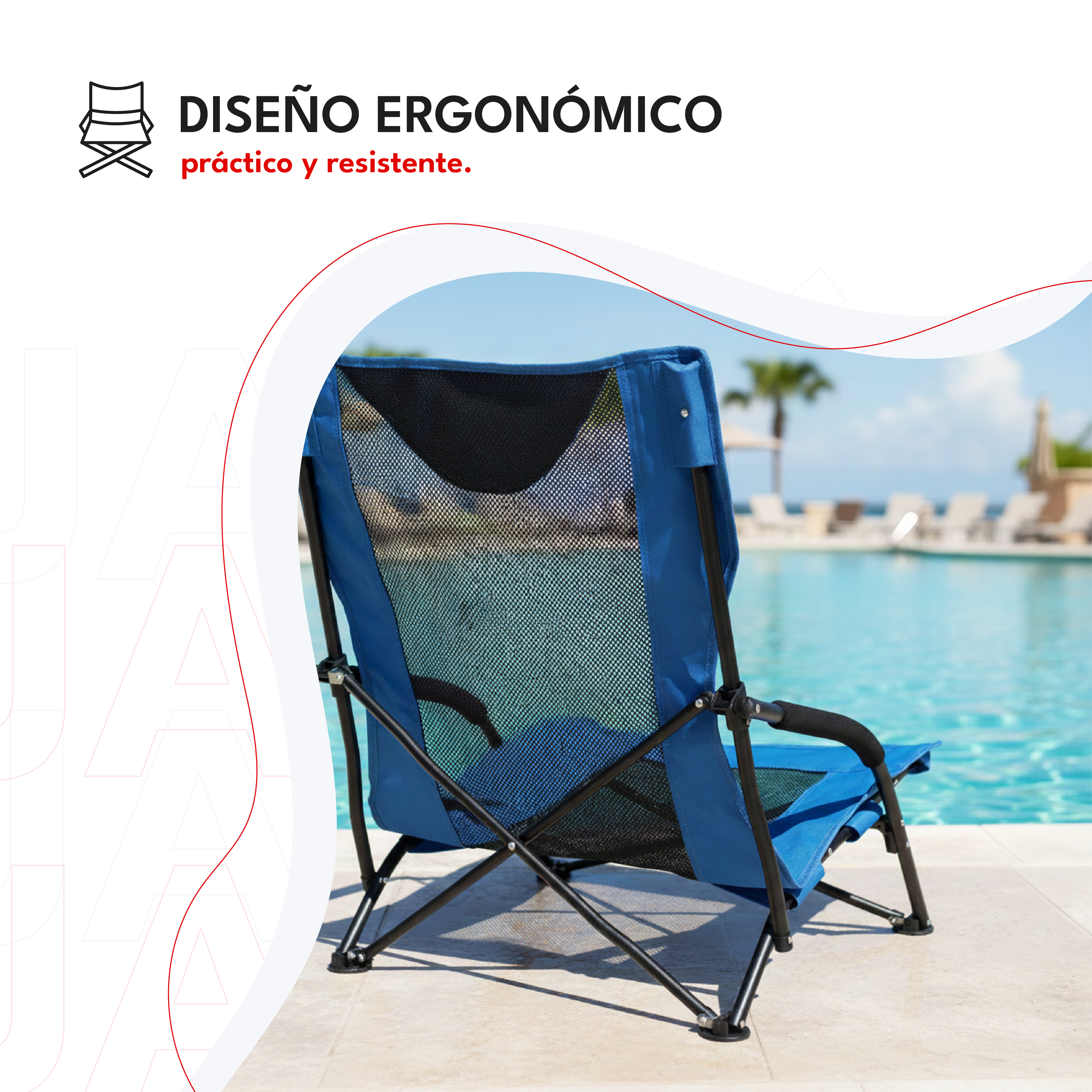 Su estructura de acero reforzado brinda estabilidad y durabilidad, mientras que su asiento de poliéster con sistema Airmesh garantiza transpirabilidad, frescura y confort incluso en los días más calurosos. Además, incorpora apoyabrazos acolchados que ofrecen una postura cómoda y relajada, junto con un bolso de transporte incluido para que la lleves a cualquier destino.
