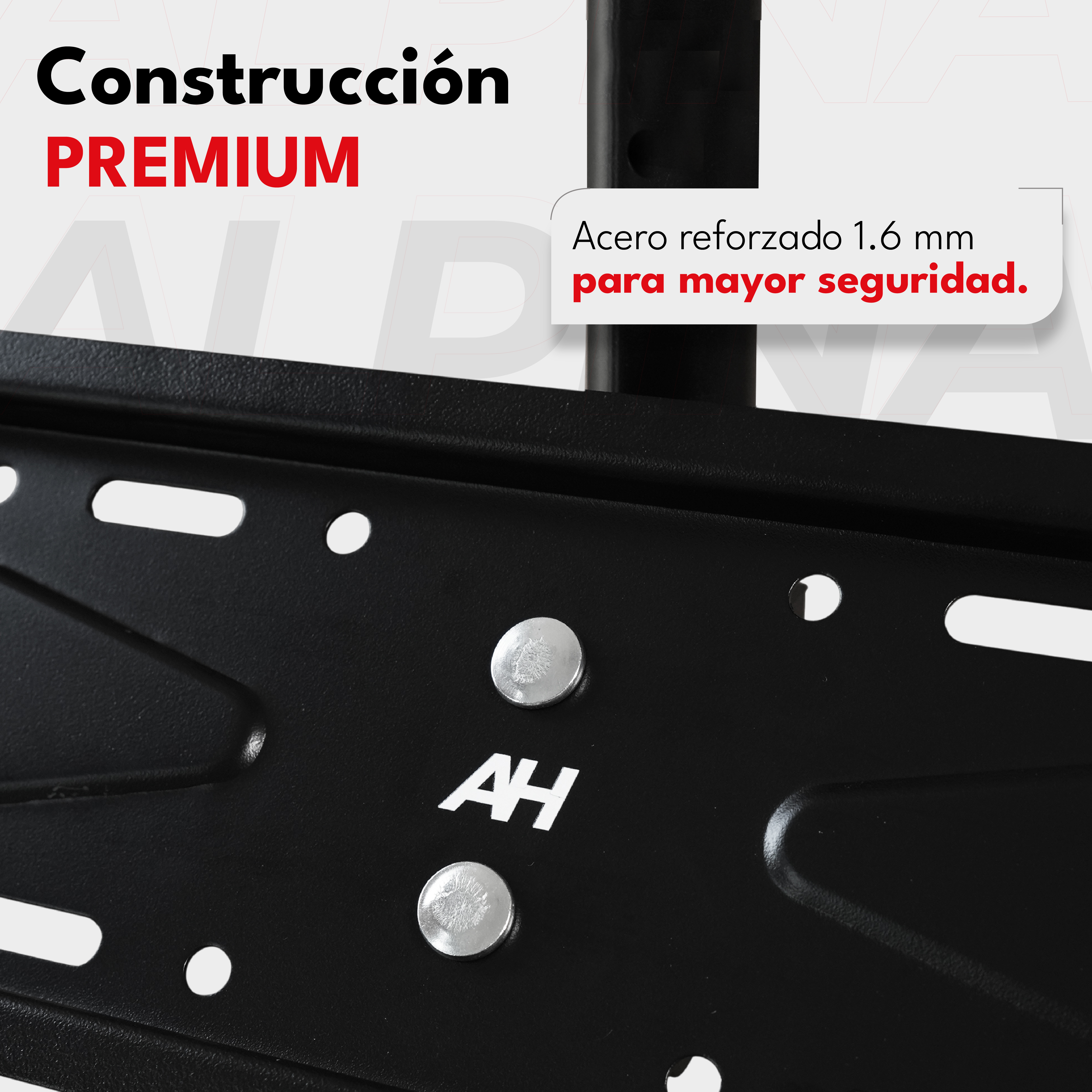 Los soportes genéricos suelen ser fabricados con materiales de bajo espesor (0.6 mm), lo que los hace inseguros. El Alpina HT-807 está construido en acero reforzado de 1.6 mm, el doble de grosor que los modelos convencionales, asegurando durabilidad, estabilidad y máxima protección para tu TV.